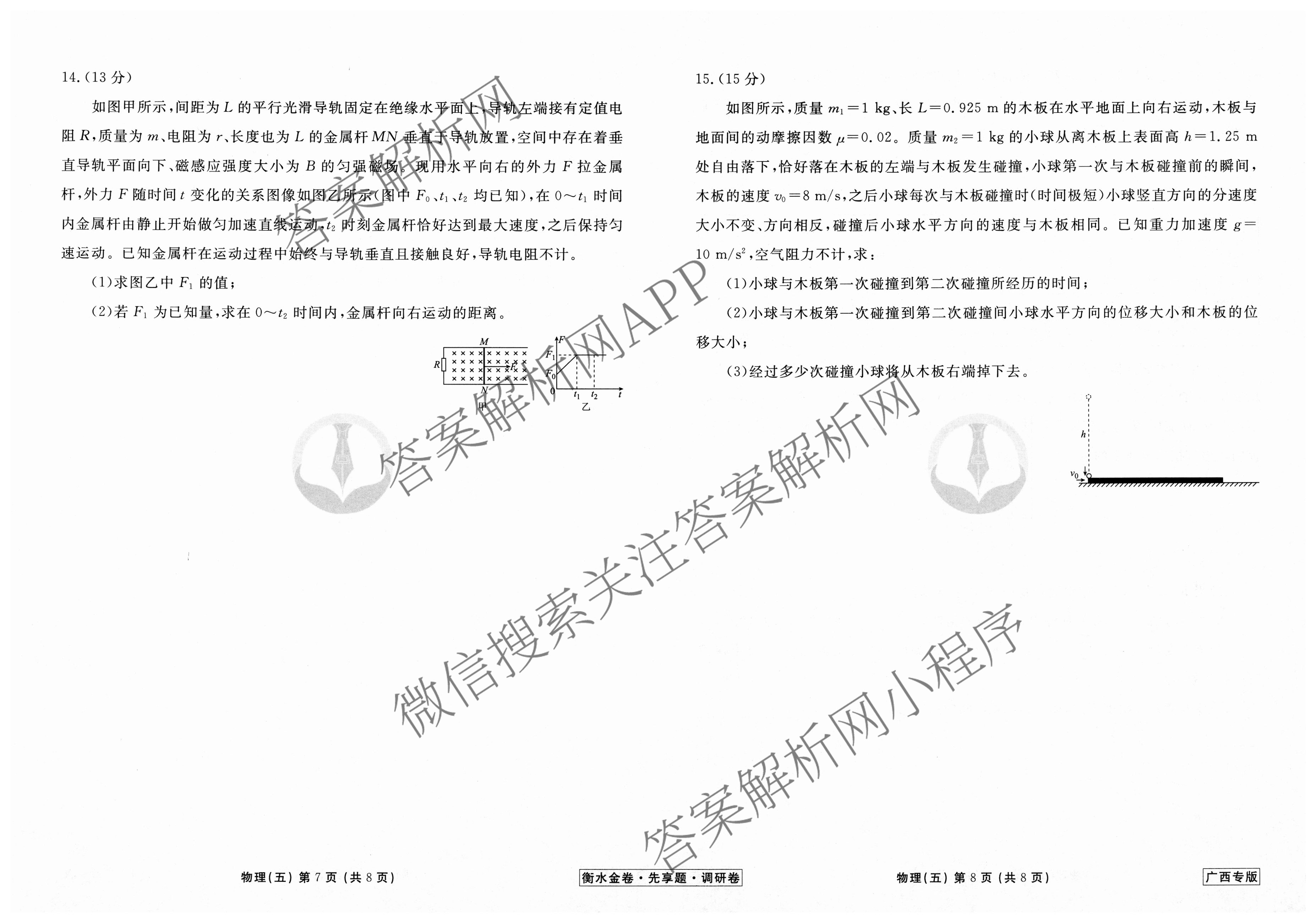 衡水金卷先享题·调研卷 2024年普通高中学业水平选择性考试模拟试题(五)5物理(广西专版)试题,目前衡水金卷先享题答案网已经汇总了衡水金卷先享题·调研卷 2024年普通高中学业水平选择性考试模拟试题(五)5物理(广西专版)试题的各科答案和试卷,获取更多衡水金卷先享题答案解析,请在关注本站。