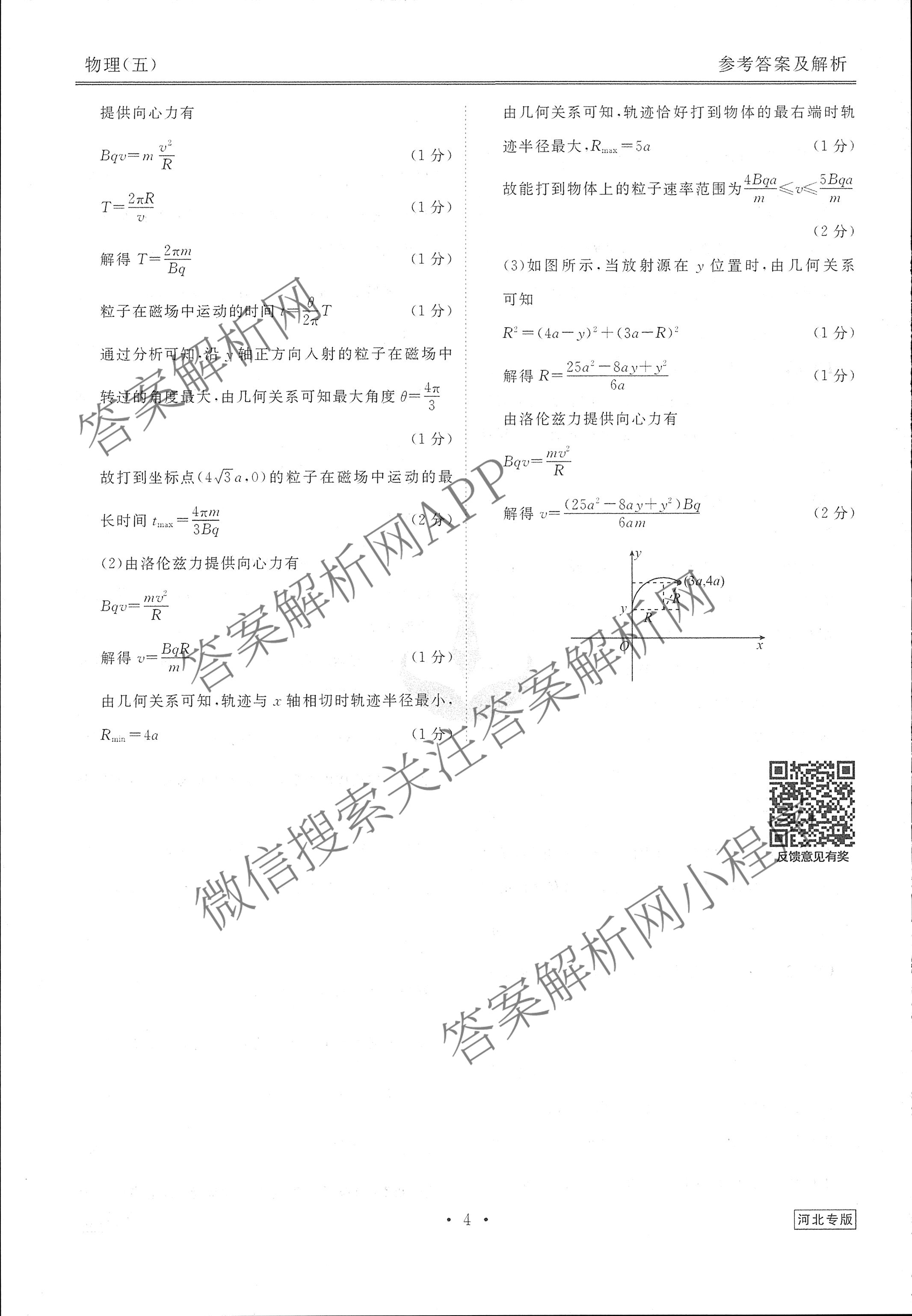 (高三)(衡水金卷先享题)·调研卷 2024年普通高中学业水平选择性考试模拟试题(五)5物理(河北专版)答案