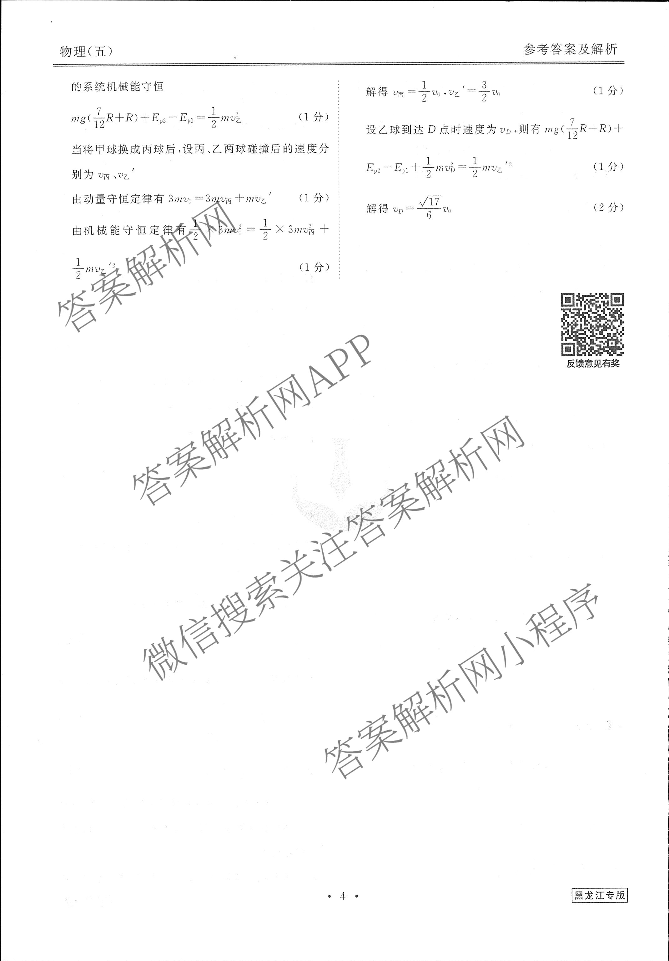 (高三)衡水金卷先享题调研卷 2024年普通高中学业水平选择性考试模拟试题(五)5物理(黑龙江专版)答案