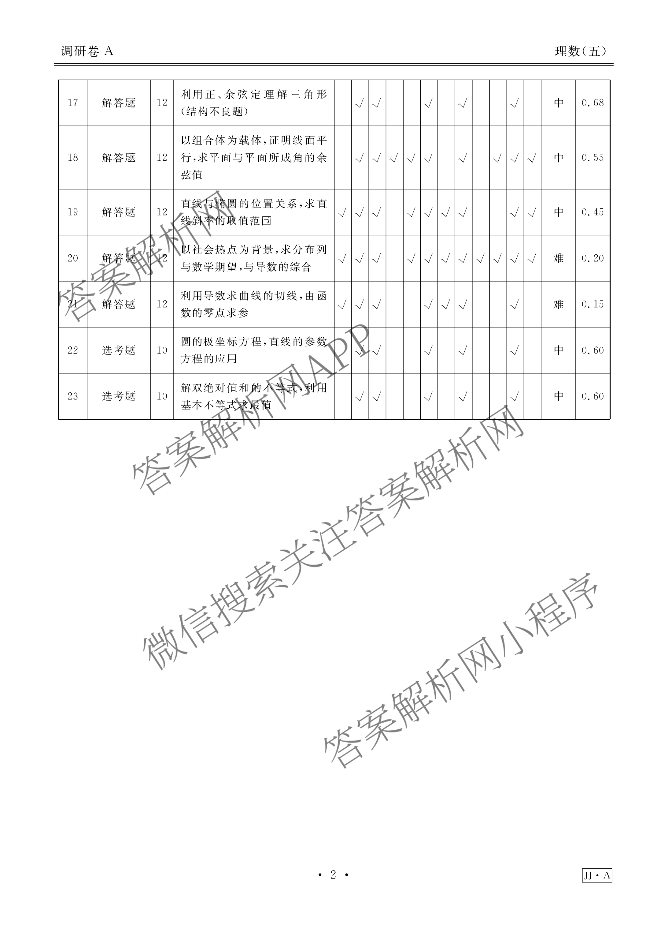 (高三)(衡水金卷先享题)调研卷 2024年普通高等学校招生全国统一考试模拟(五)5理数(JJA)答案