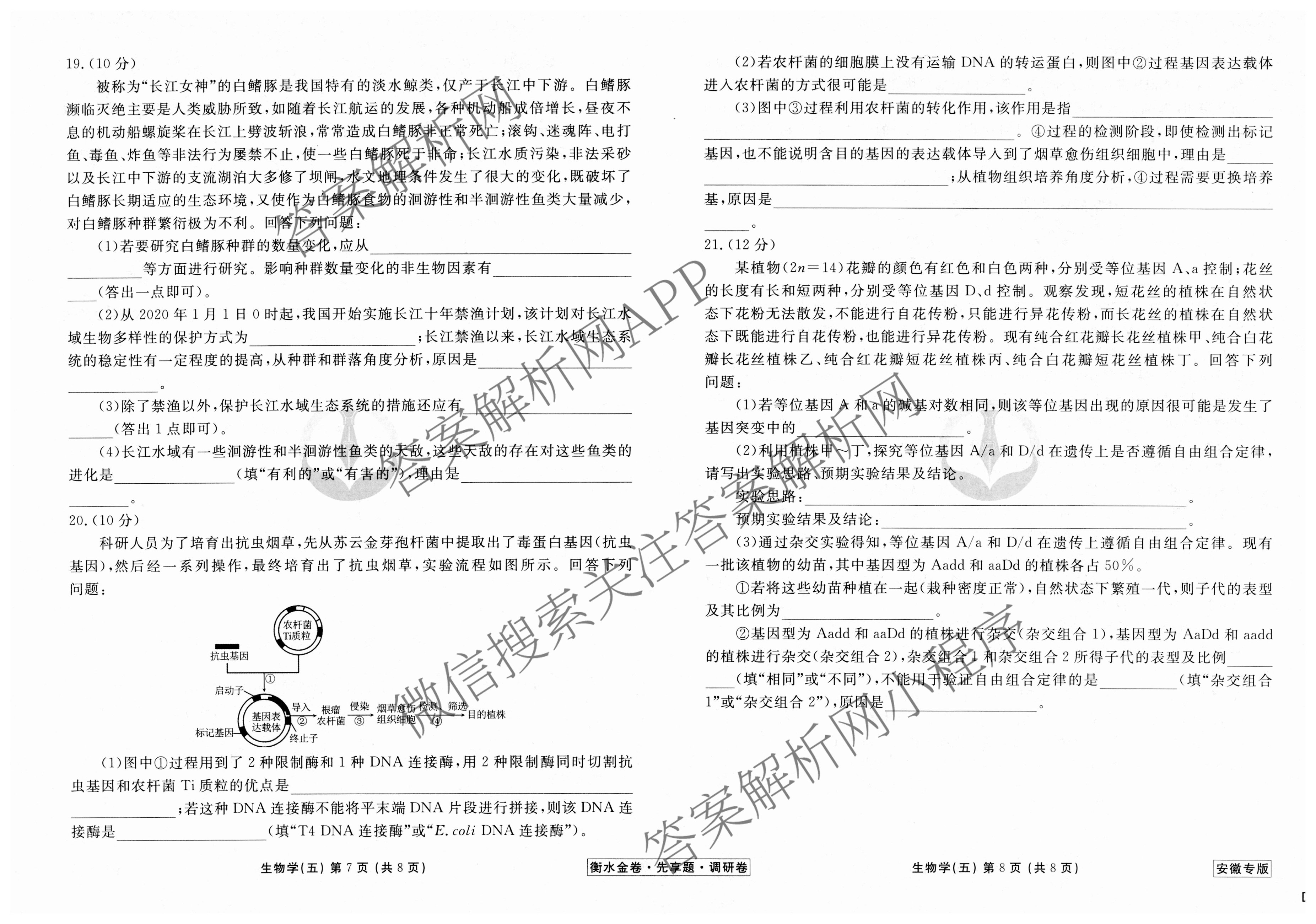 衡水金卷先享题·调研卷 2024年普通高中学业水平选择性考试模拟试题(五)5生物(安徽专版)试题,目前衡水金卷先享题答案网已经汇总了衡水金卷先享题·调研卷 2024年普通高中学业水平选择性考试模拟试题(五)5生物(安徽专版)试题的各科答案和试卷,获取更多衡水金卷先享题答案解析,请在关注本站。