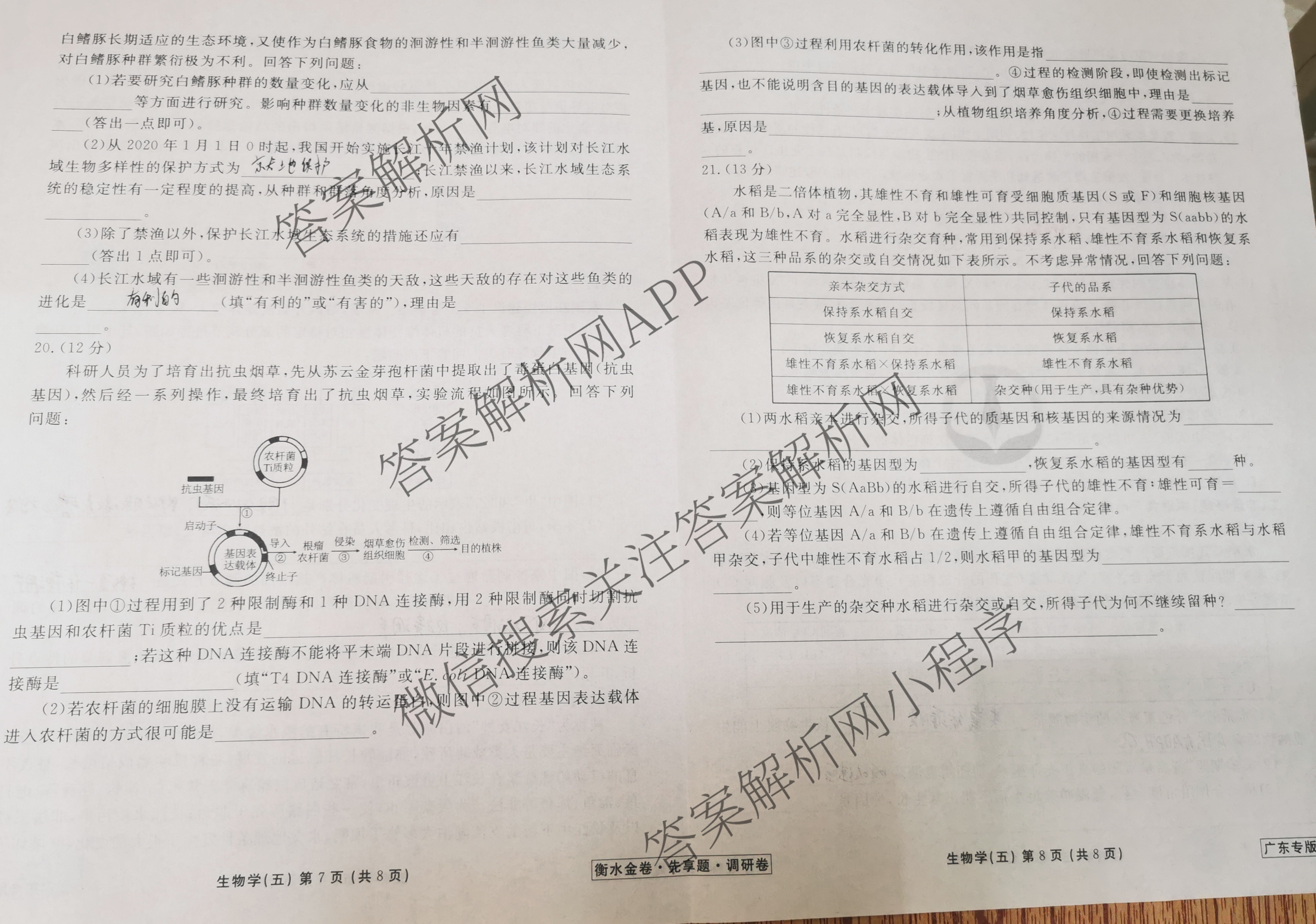 衡水金卷先享题·调研卷 2024年普通高中学业水平选择性考试模拟试题(五)5生物(广东专版)试题,目前衡水金卷先享题答案网已经汇总了衡水金卷先享题·调研卷 2024年普通高中学业水平选择性考试模拟试题(五)5生物(广东专版)试题的各科答案和试卷,获取更多衡水金卷先享题答案解析,请在关注本站。