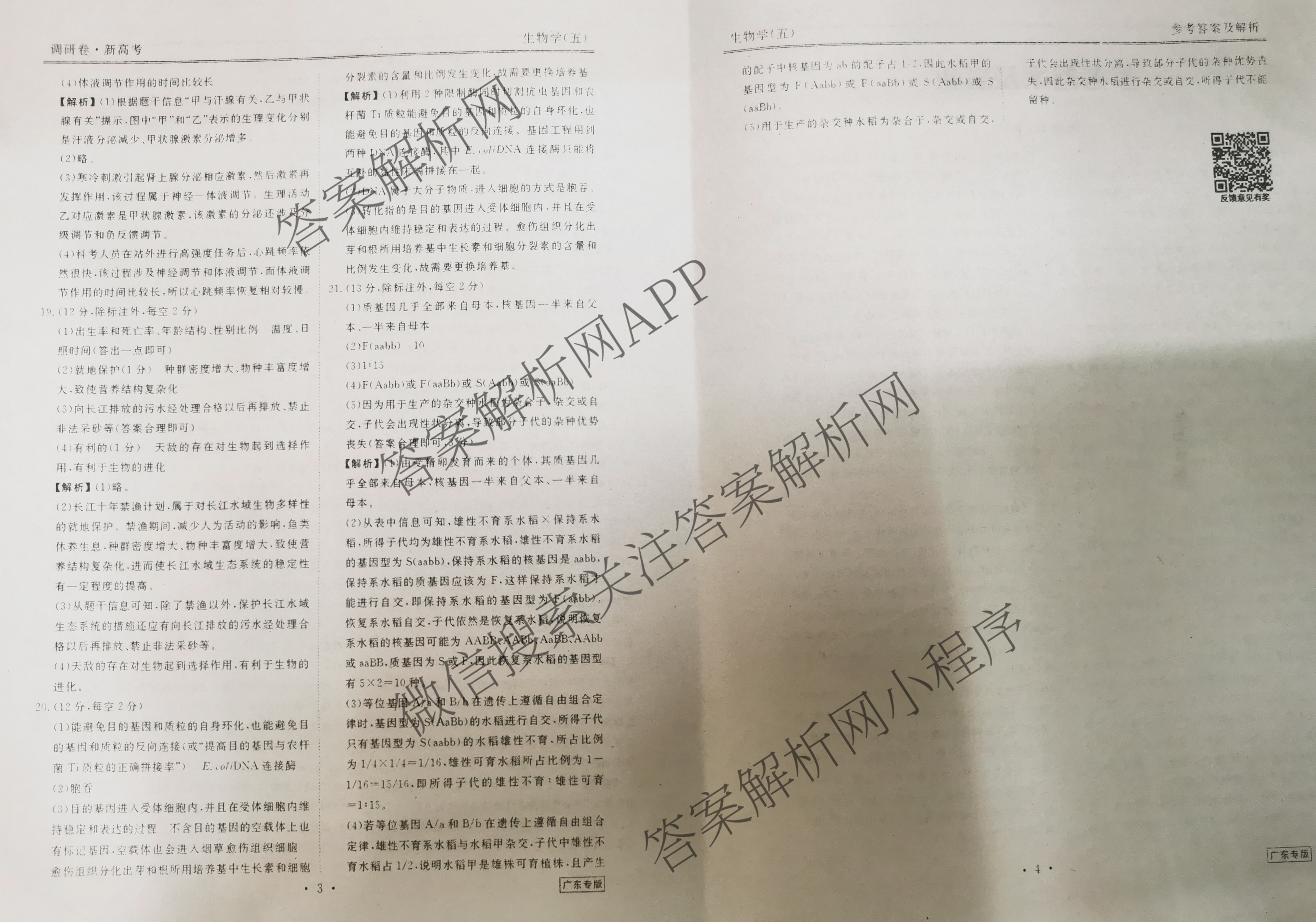(衡水金卷先享题)·调研卷 2024年普通高中学业水平选择性考试模拟试题(五)5生物(广东专版)答案