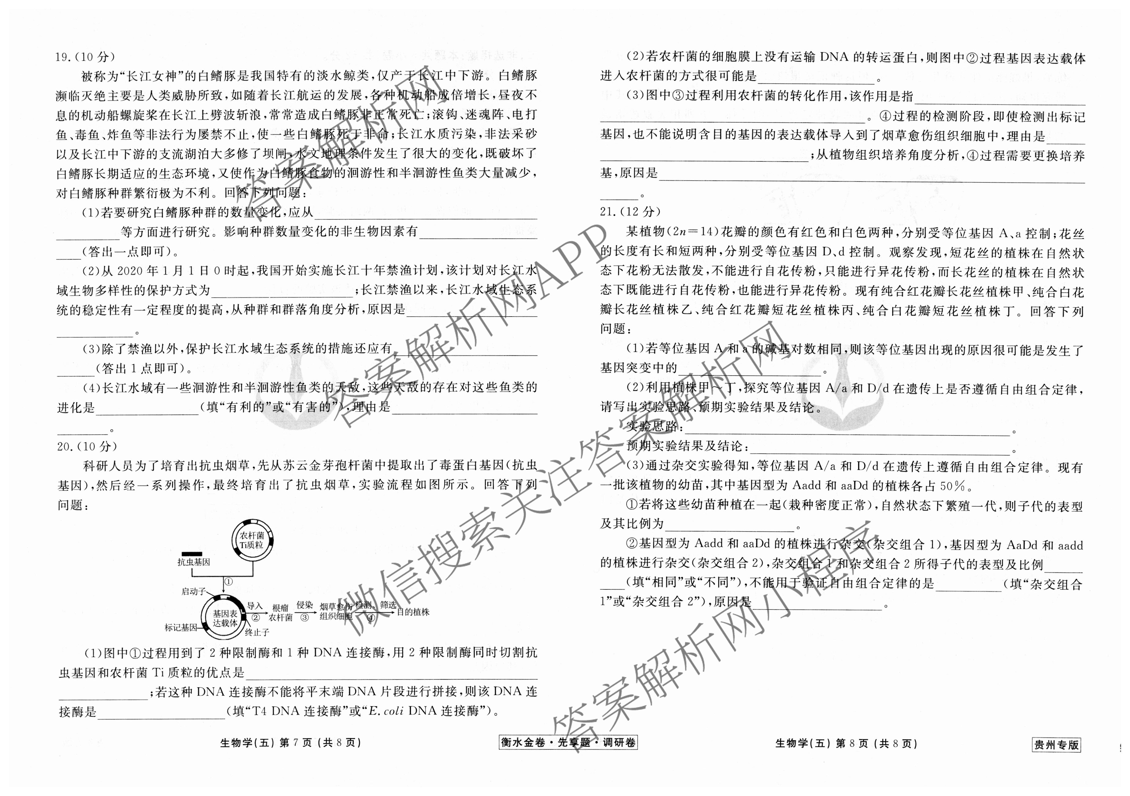 衡水金卷先享题·调研卷 2024年普通高中学业水平选择性考试模拟试题(五)5生物(贵州专版)试题,目前衡水金卷先享题答案网已经汇总了衡水金卷先享题·调研卷 2024年普通高中学业水平选择性考试模拟试题(五)5生物(贵州专版)试题的各科答案和试卷,获取更多衡水金卷先享题答案解析,请在关注本站。