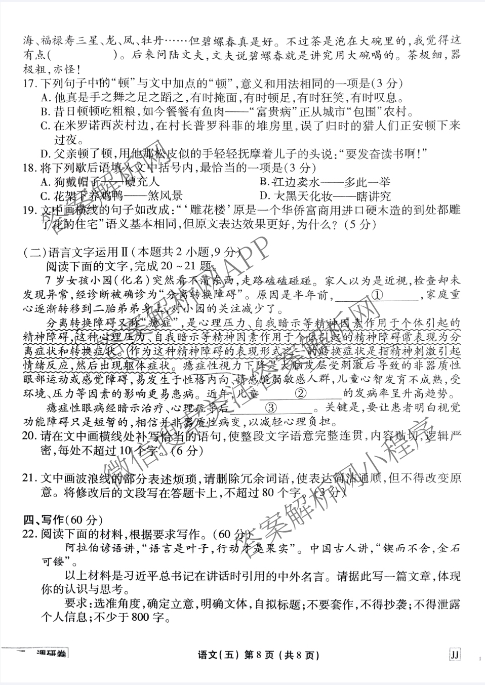 [高三]衡水金卷先享题调研卷 2024年普通高等学校招生全国统一考试模拟试题(五)5语文(JJ)试题