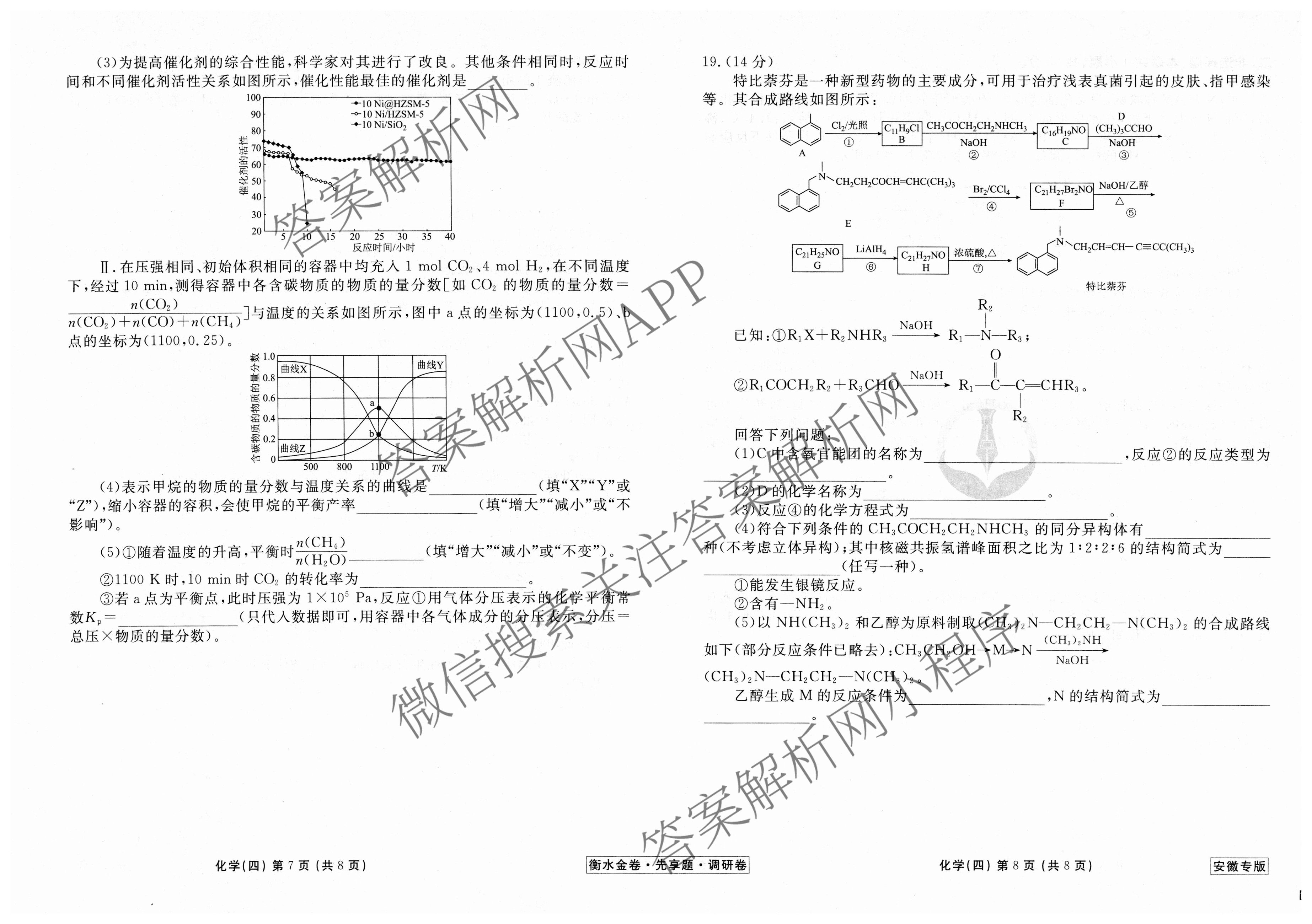 - [衡水金卷先享题]调研卷 2024年普通高中学业水平选择性考试模拟试题(四)4化学(安徽专版)答案