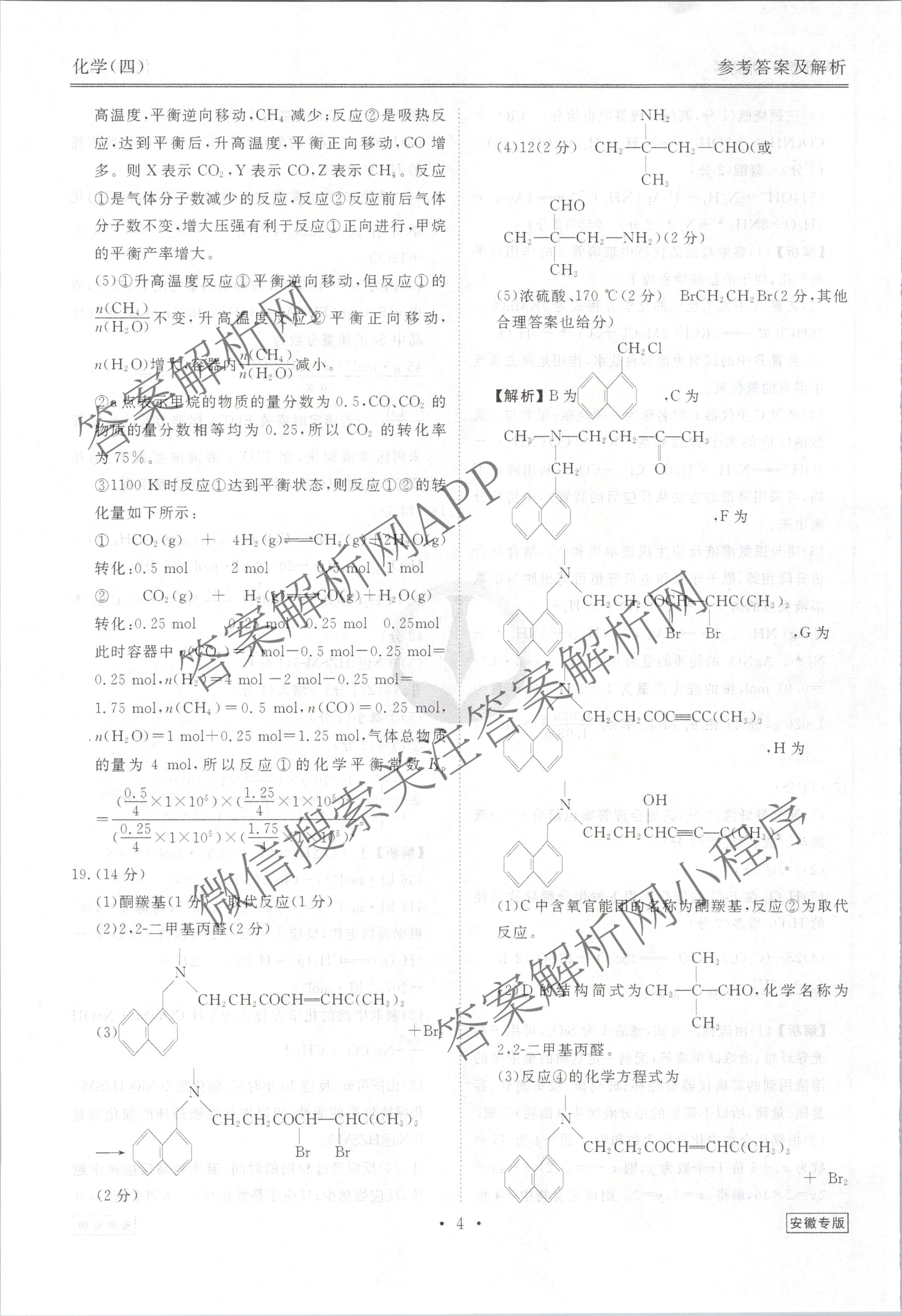 - [衡水金卷先享题]调研卷 2024年普通高中学业水平选择性考试模拟试题(四)4化学(安徽专版)答案