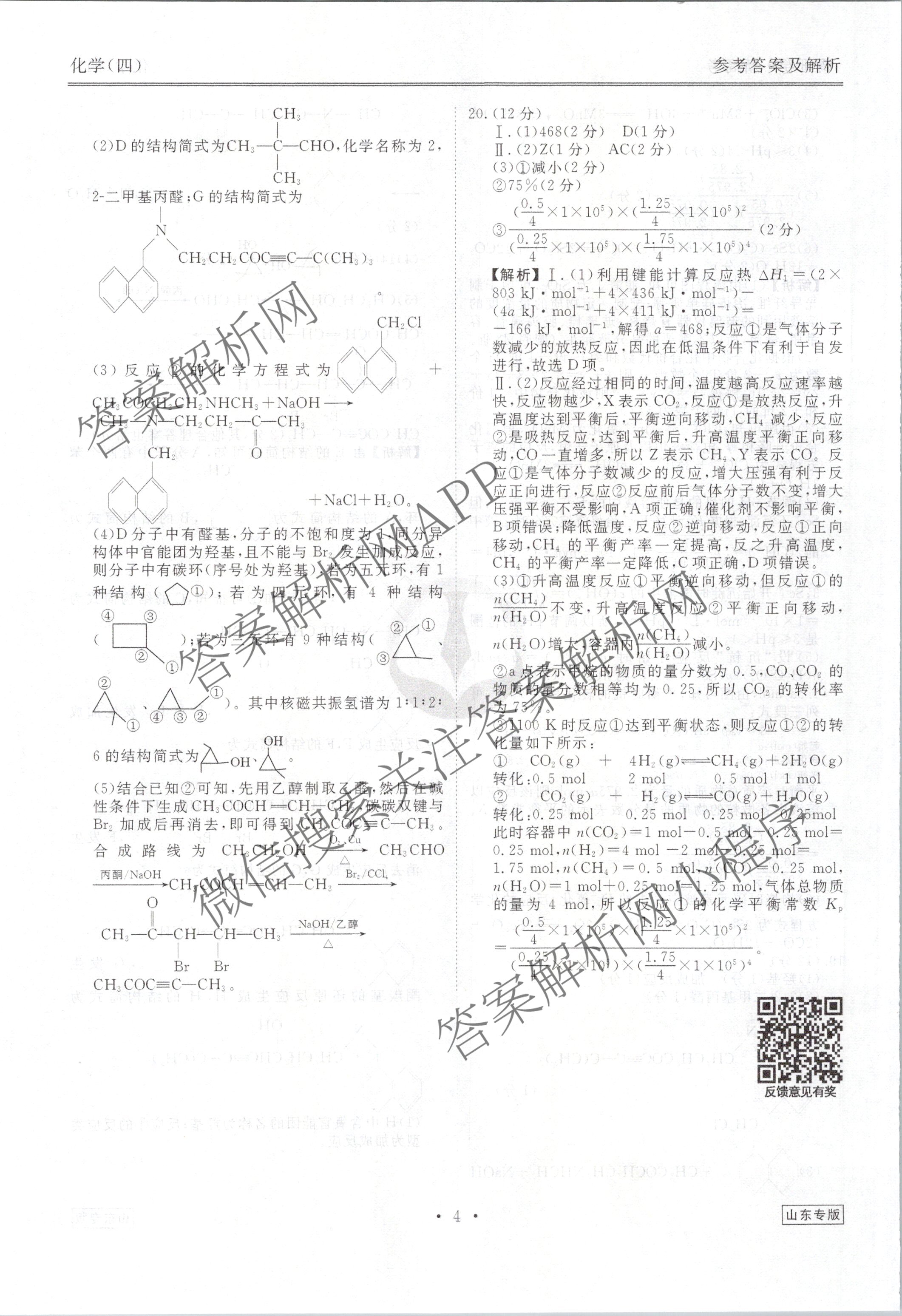 (高三)(衡水金卷先享题)·调研卷 2024年普通高中学业水平选择性考试模拟试题(四)4化学(山东专版)答案