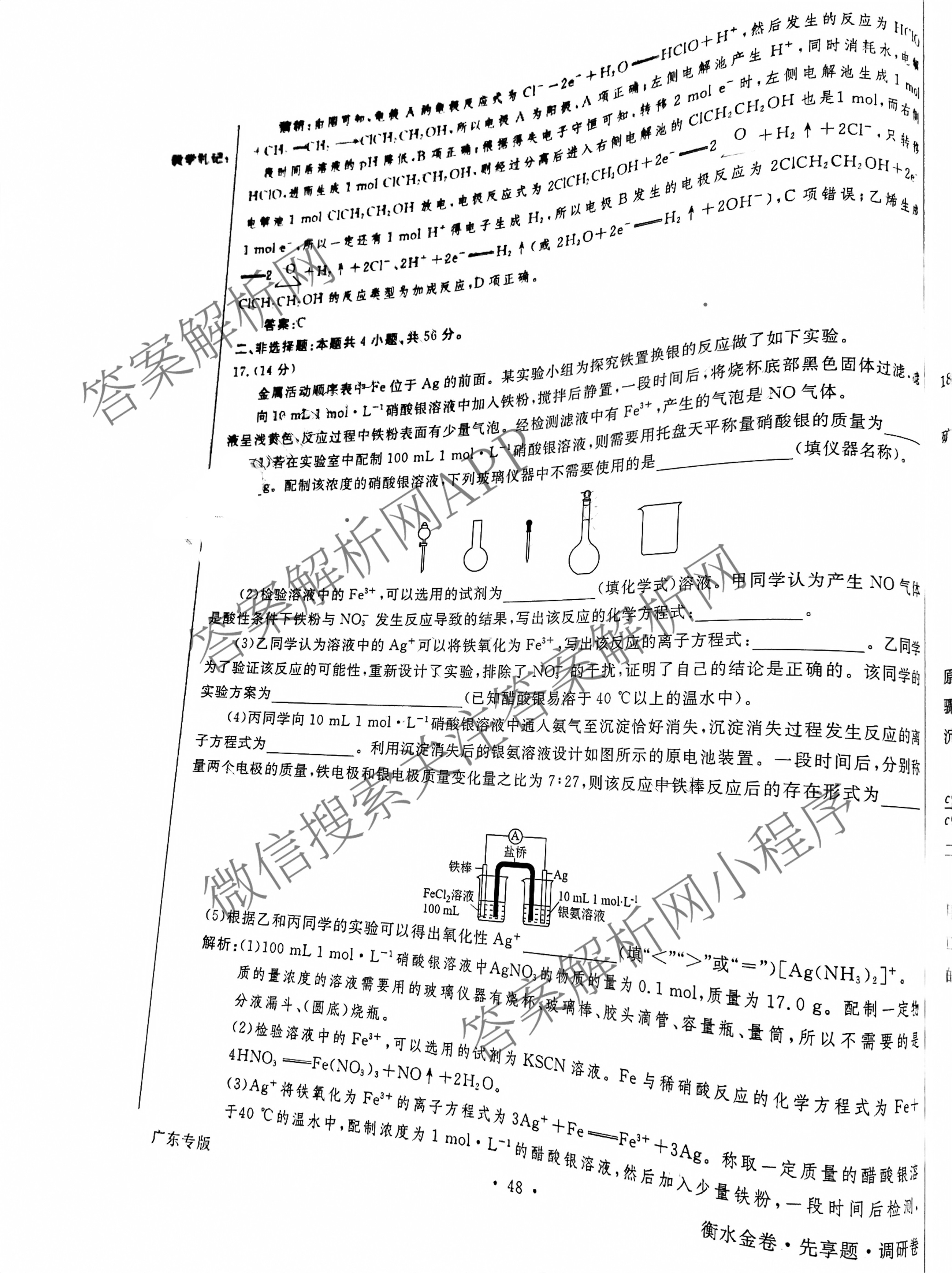衡水金卷先享题·调研卷2024年普通高中学业水平选择性考试模拟试题(四)4化学(广东专版)答案,目前衡水金卷先享题答案网已经汇总了衡水金卷先享题·调研卷2024年普通高中学业水平选择性考试模拟试题(四)4化学(广东专版)答案的各科答案和试卷,获取更多衡水金卷先享题答案解析,请在关注本站。