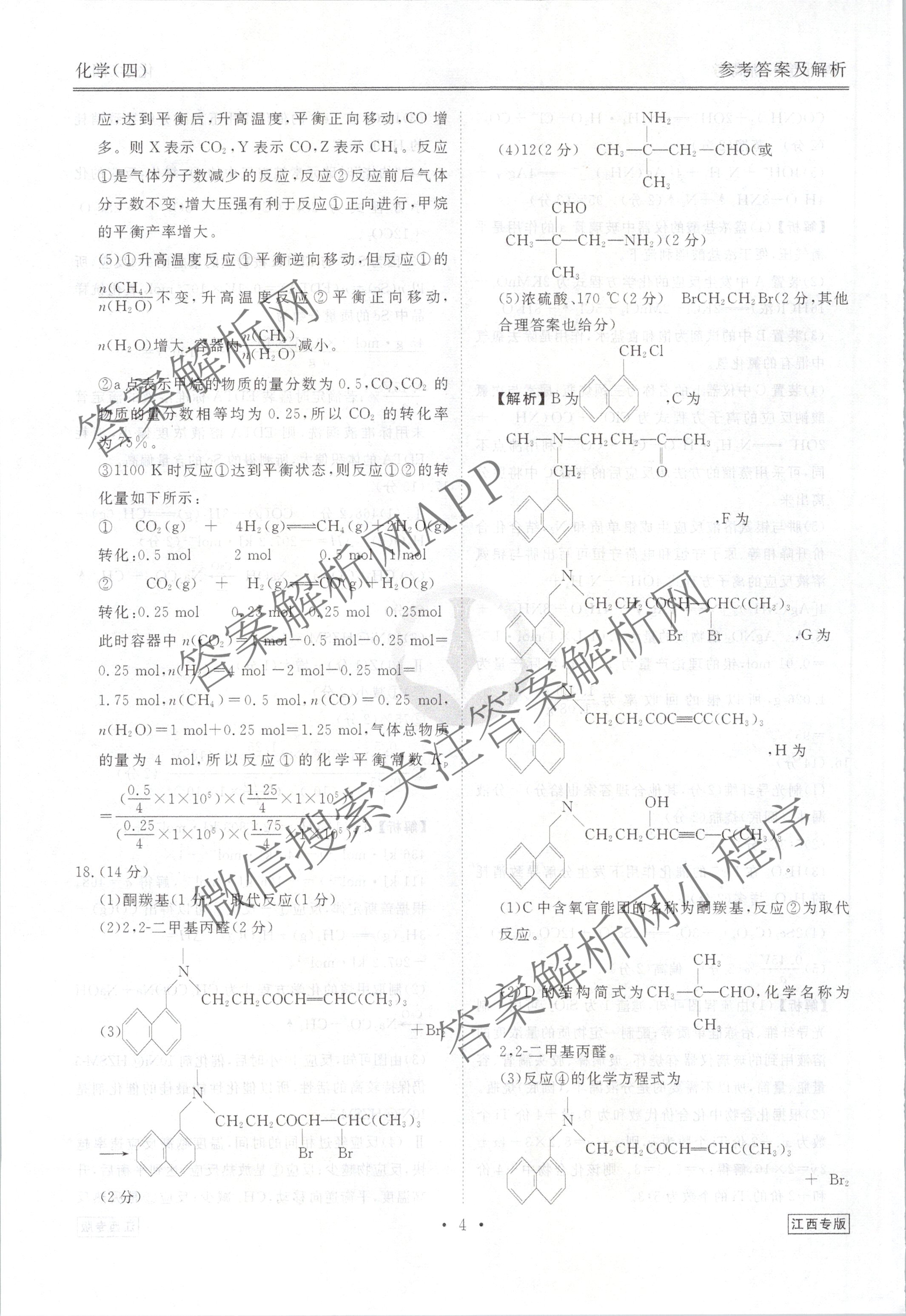 - (高三)[衡水金卷先享题]·调研卷 2024年普通高中学业水平选择性考试模拟试题(四)4化学(江西专版)答案
