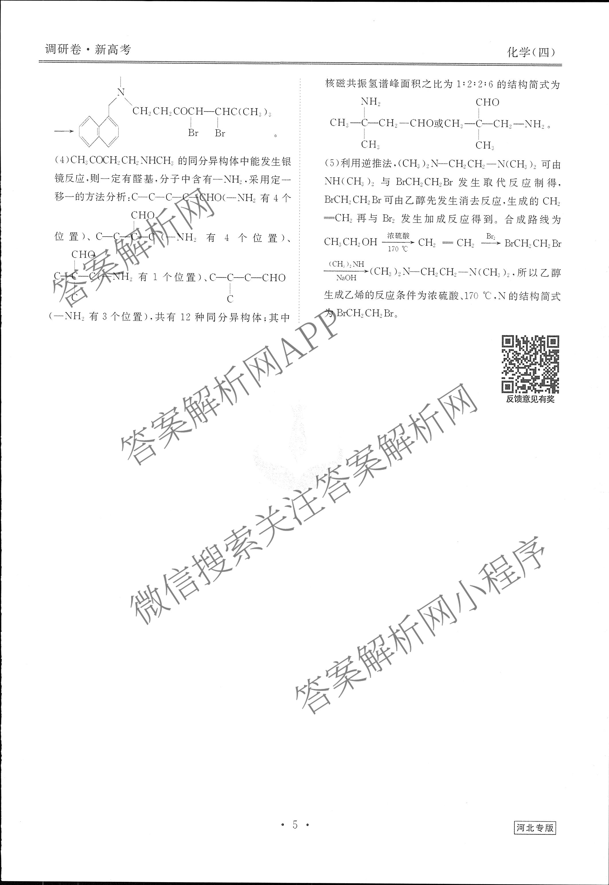 - [高三][衡水金卷先享题]·调研卷 2024年普通高中学业水平选择性考试模拟试题(四)4化学(河北专版)答案