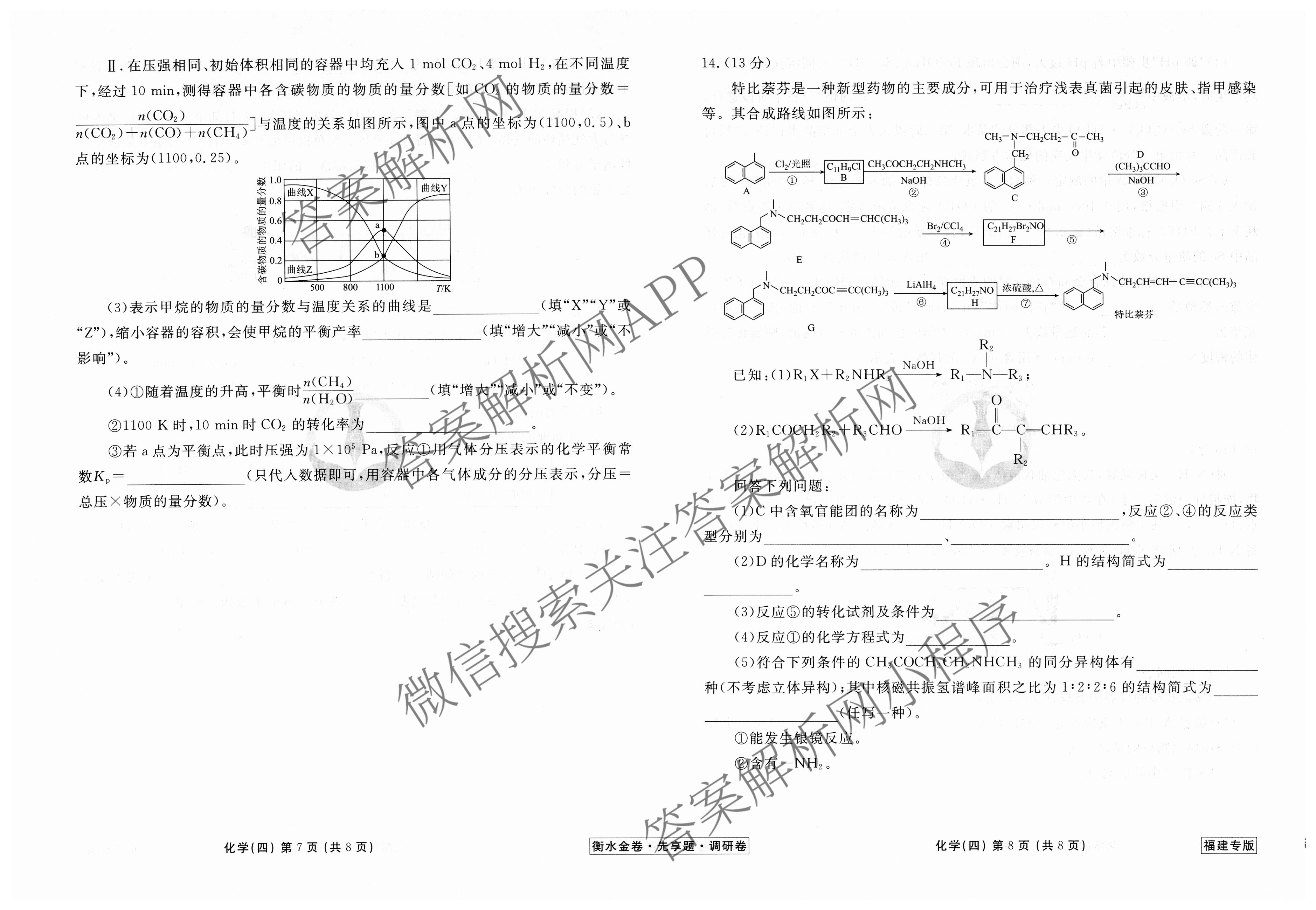 - [高三](衡水金卷先享题)·调研卷 2024年普通高中学业水平选择性考试模拟试题(四)4化学(福建专版)答案