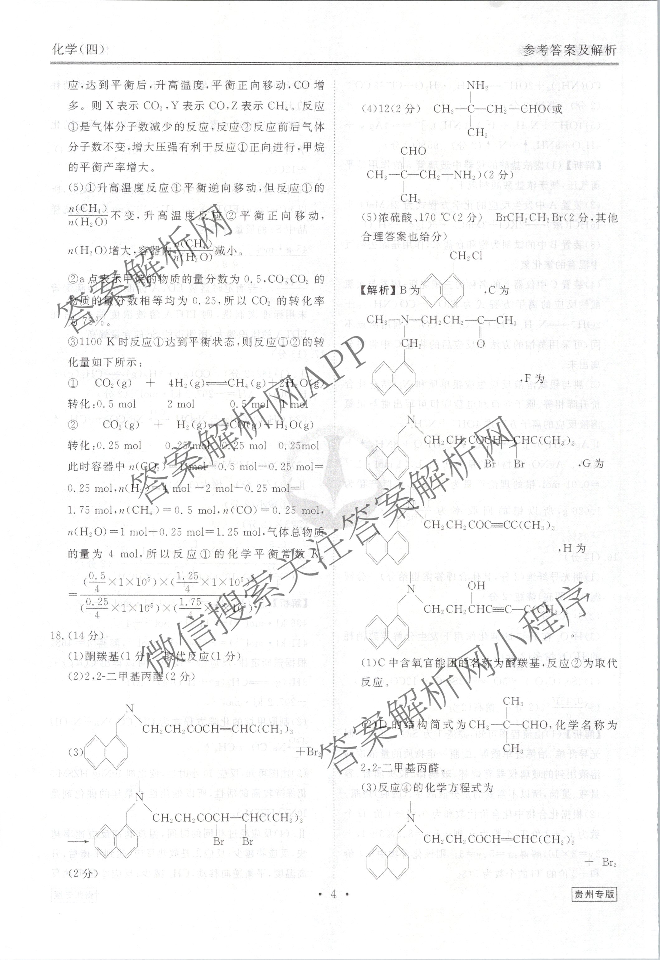 (衡水金卷先享题)调研卷 2024年普通高中学业水平选择性考试模拟试题(四)4化学(贵州专版)答案