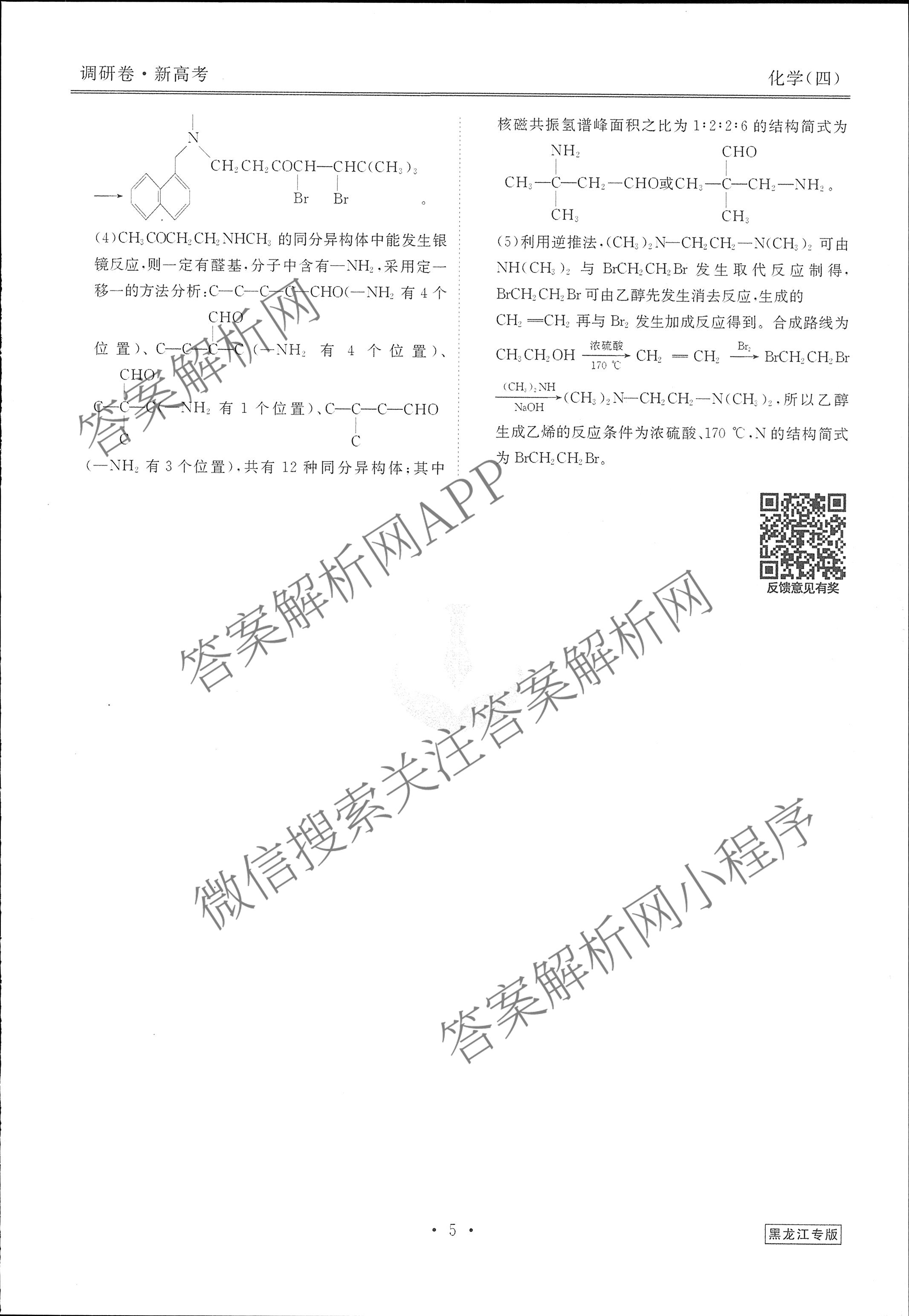 (高三)衡水金卷先享题调研卷 2024年普通高中学业水平选择性考试模拟试题(四)4化学(黑龙江专版)答案