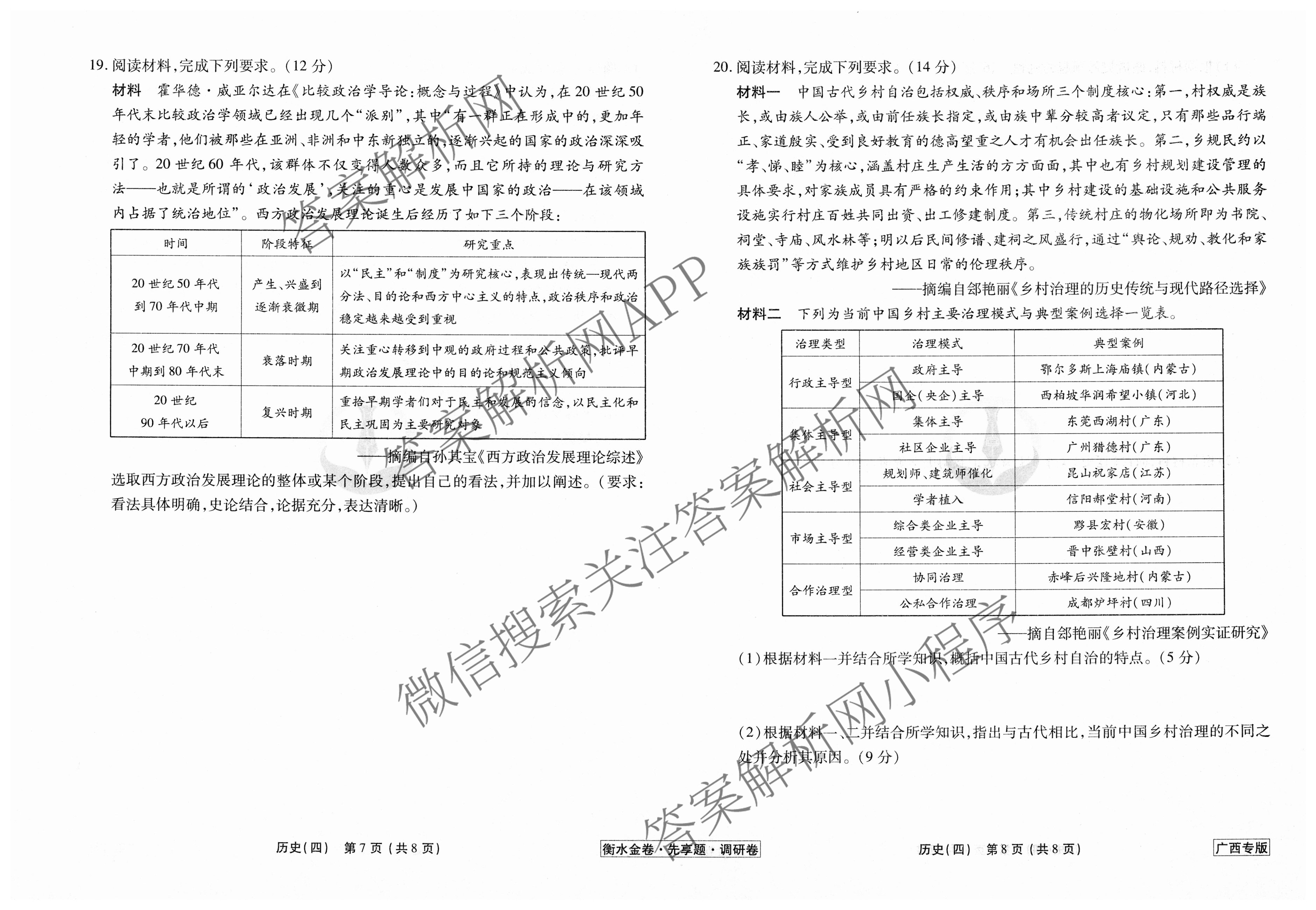 - [高三]衡水金卷先享题·调研卷 2024年普通高中学业水平选择性考试模拟试题(四)4历史(广西专版)试题