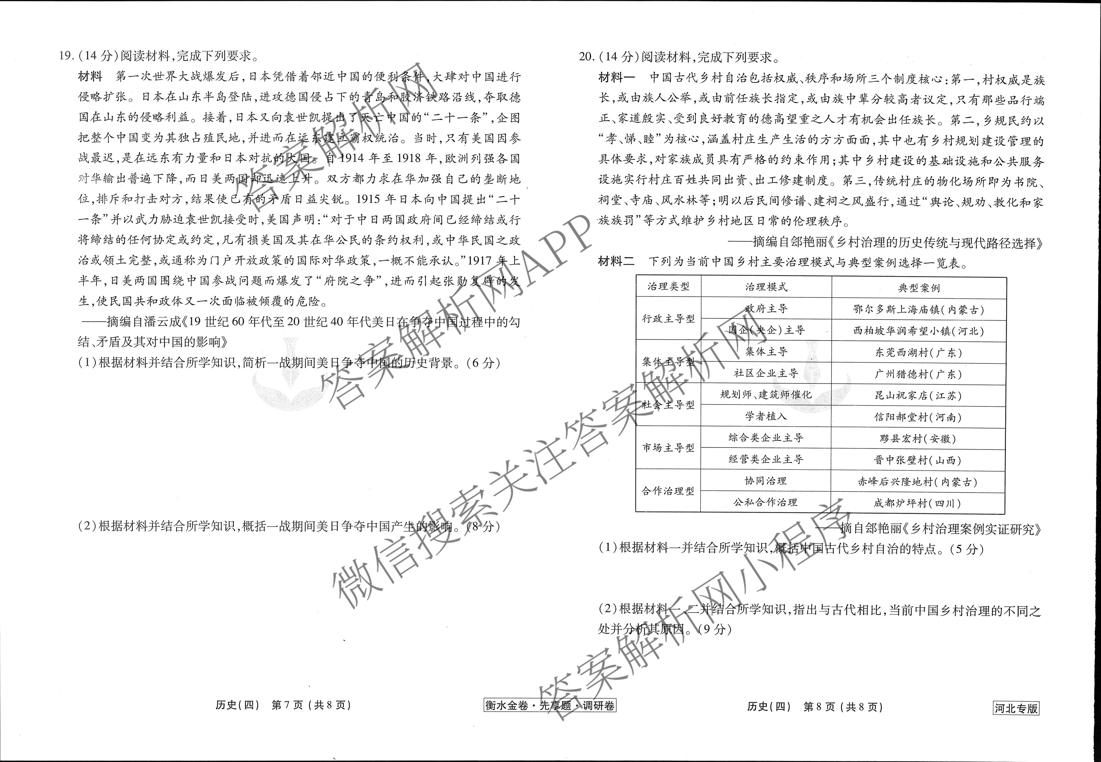 - [高三]衡水金卷先享题调研卷 2024年普通高中学业水平选择性考试模拟试题(四)4历史(江西专版)答案