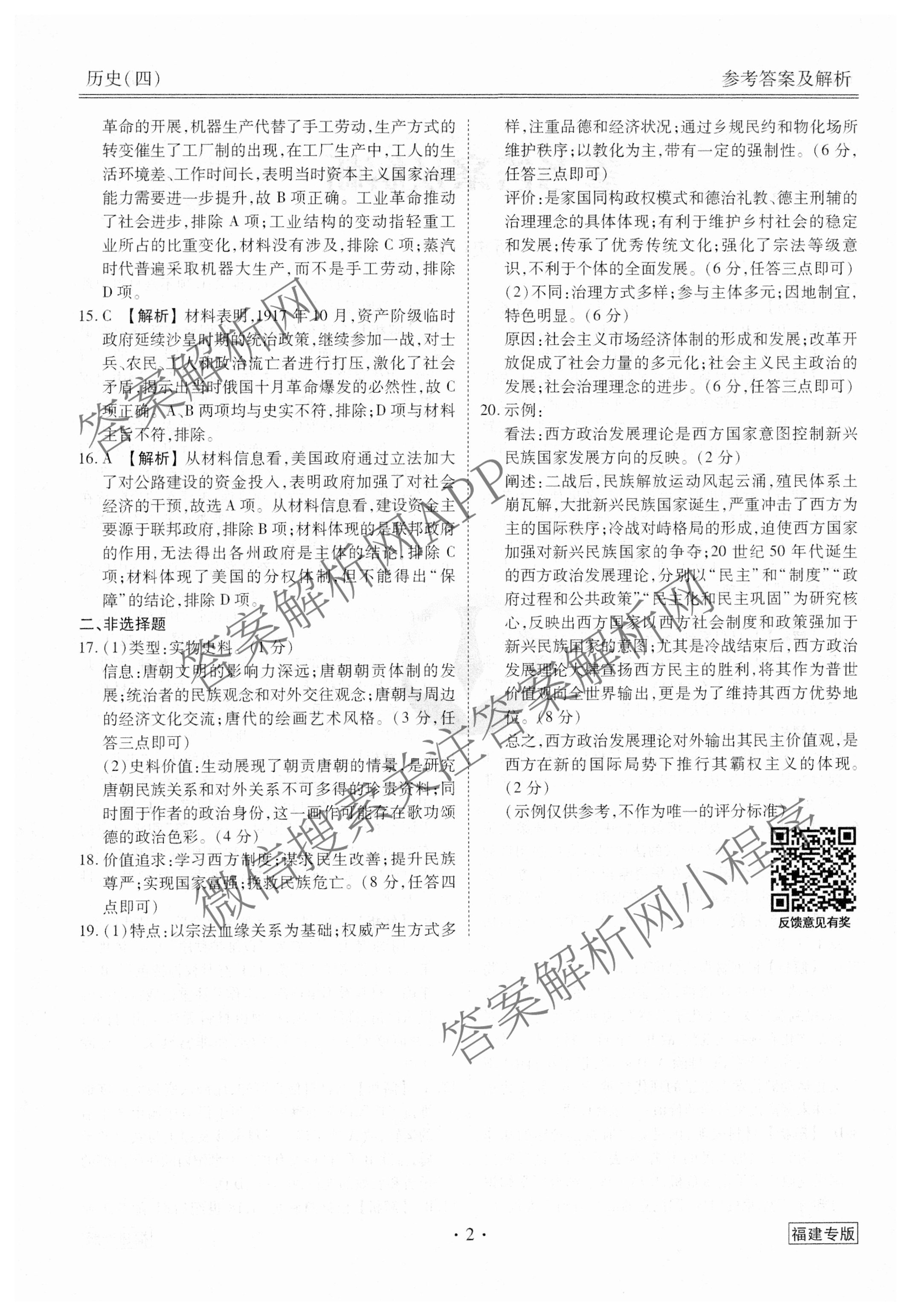 - 高三[衡水金卷先享题]调研卷 2024年普通高中学业水平选择性考试模拟试题(四)4历史(福建专版)答案