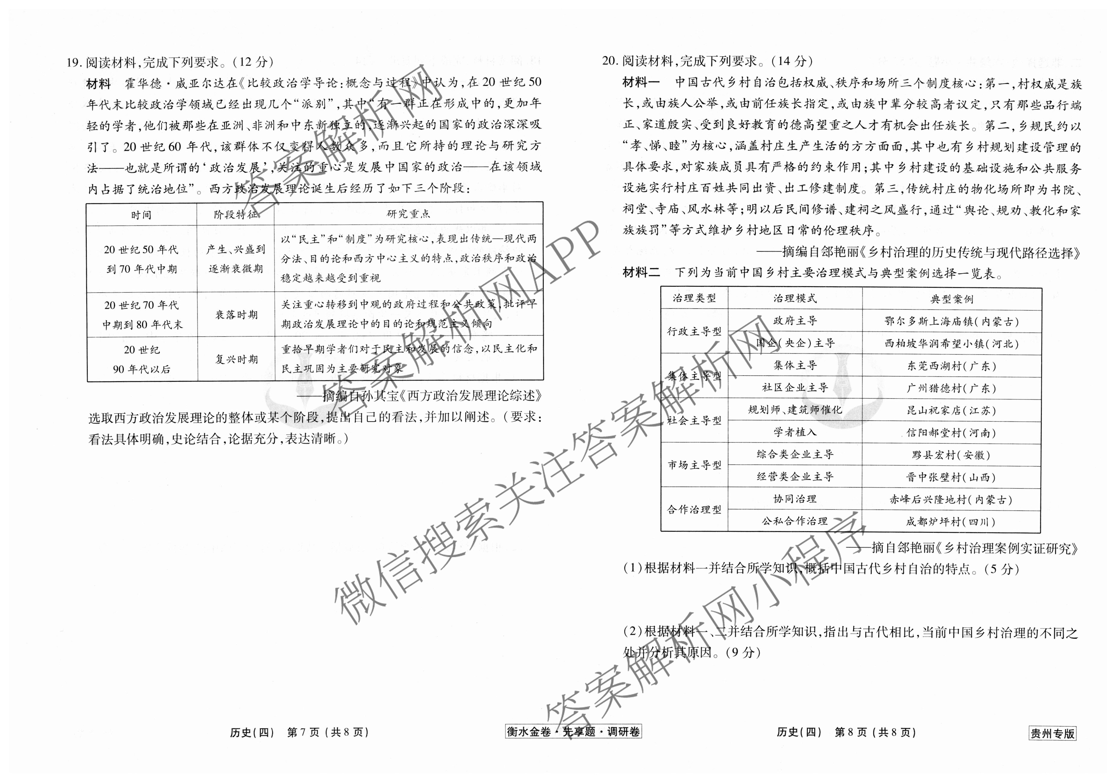- (衡水金卷先享题)·调研卷 2024年普通高中学业水平选择性考试模拟试题(四)4历史(贵州专版)答案