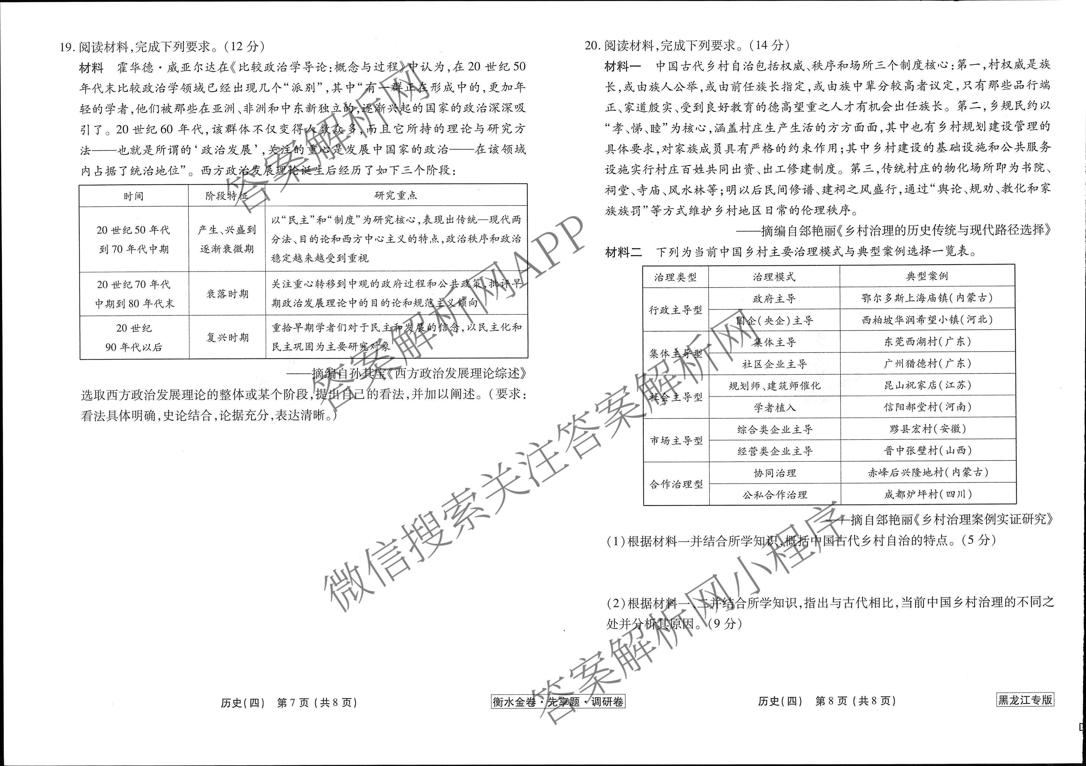 - [衡水金卷先享题]·调研卷 2024年普通高中学业水平选择性考试模拟试题(四)4历史(黑龙江专版)答案