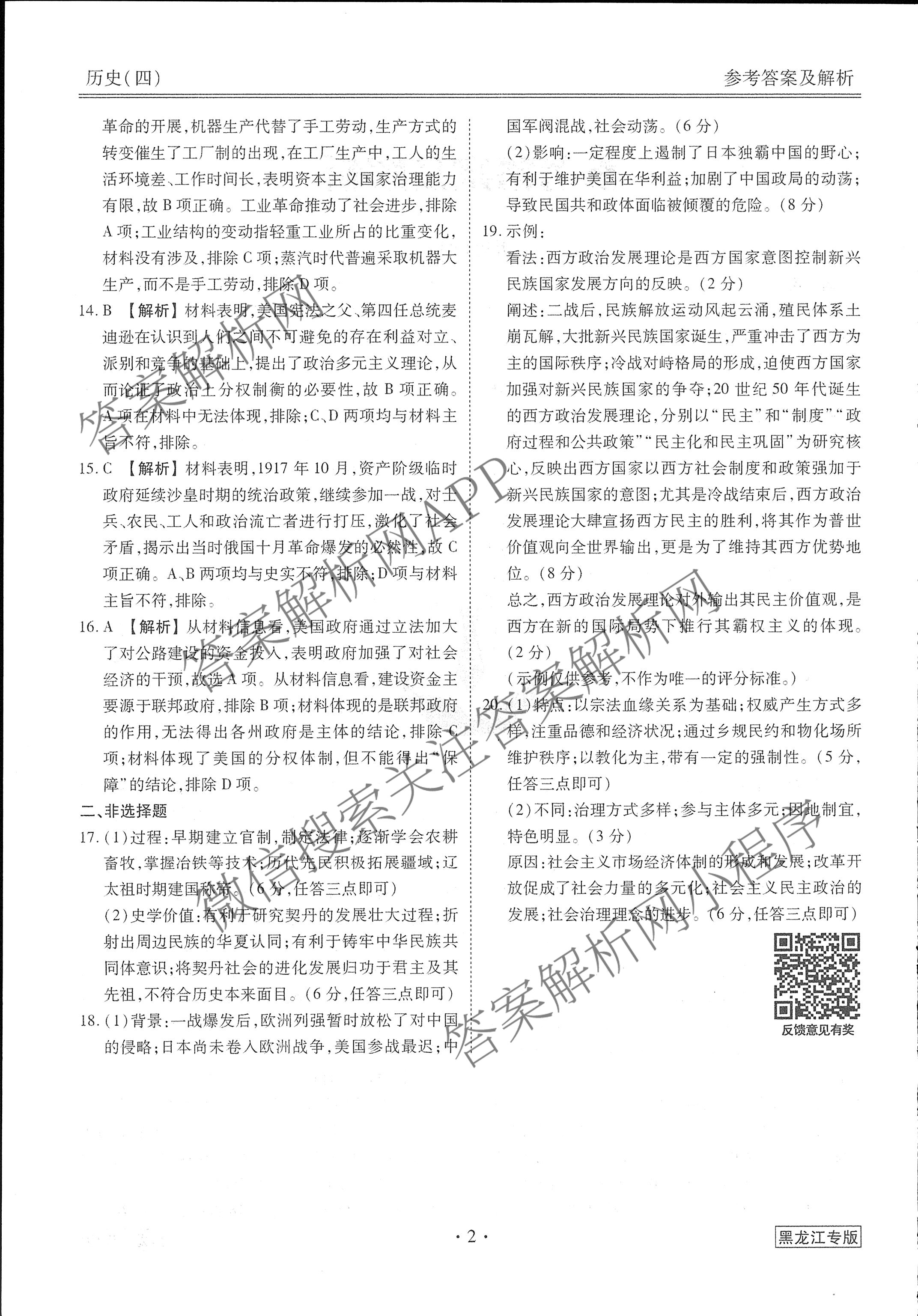 [衡水金卷先享题]·调研卷 2024年普通高中学业水平选择性考试模拟试题(四)4历史(黑龙江专版)答案