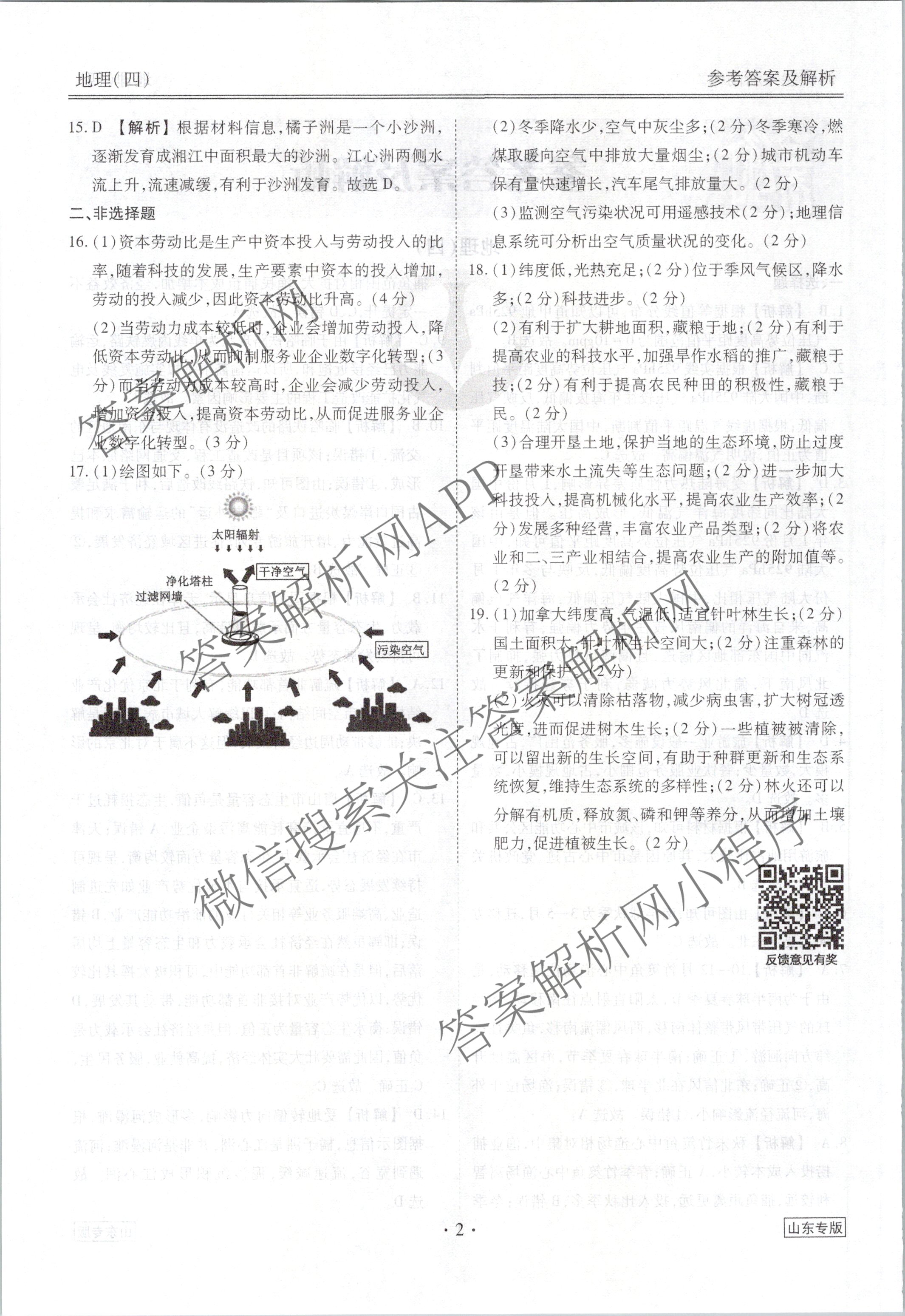 - [高三](衡水金卷先享题)调研卷 2024年普通高中学业水平选择性考试模拟试题(四)4地理(山东专版)答案