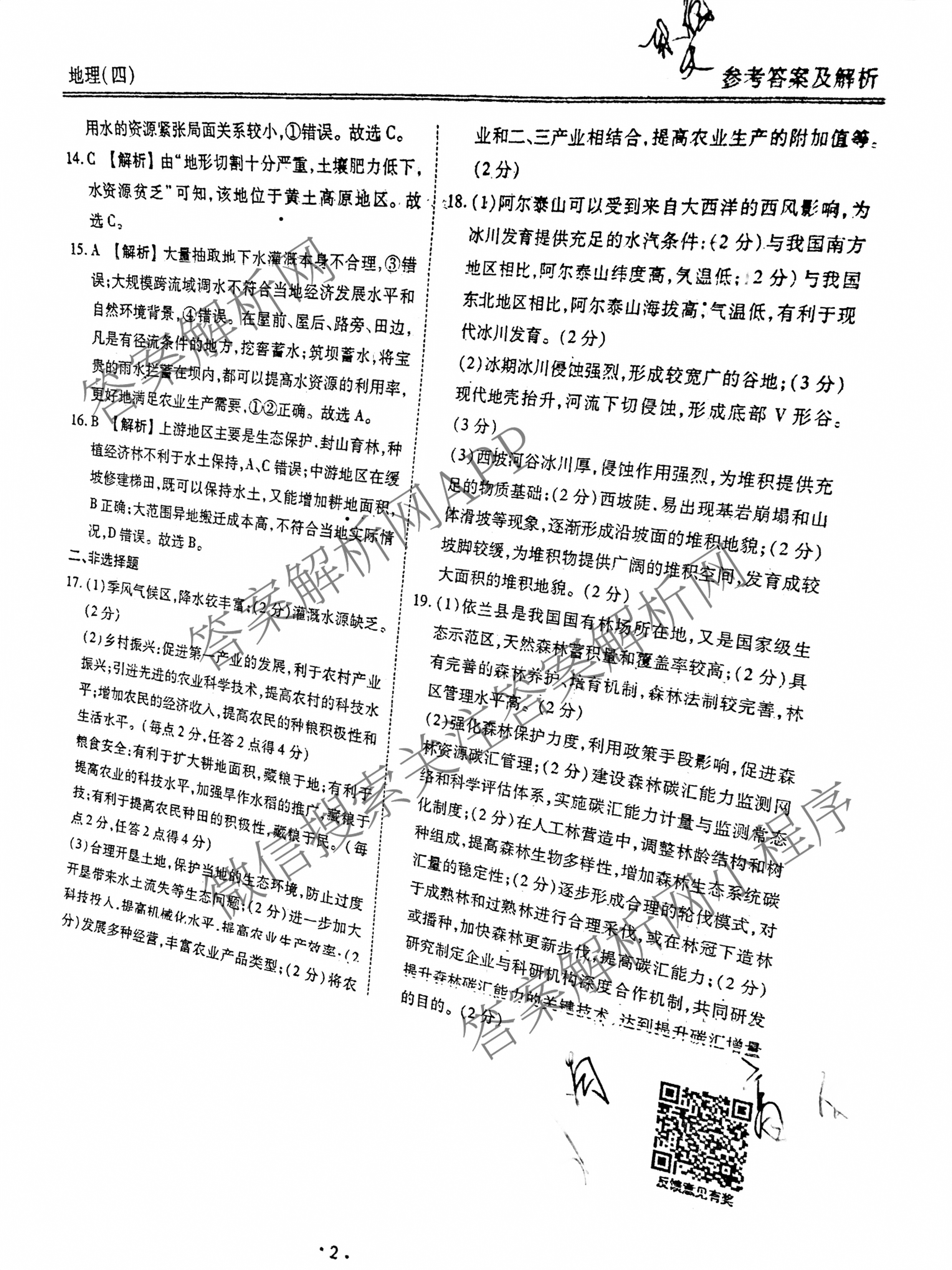 - [高三](衡水金卷先享题)·调研卷2024年普通高等学校招生全国统一考试模拟试题(四)4地理(新教材)答案