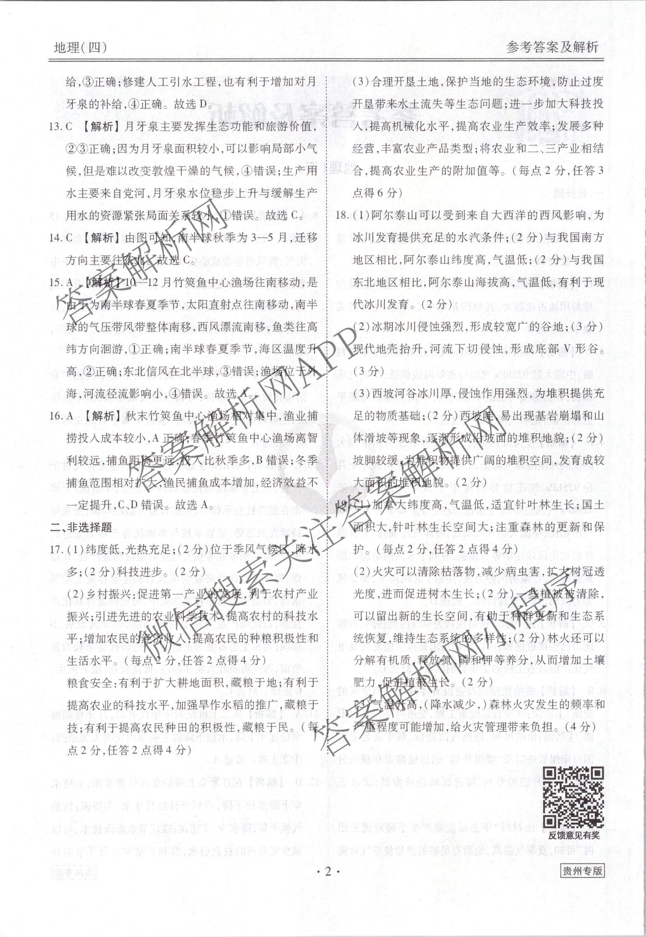 (衡水金卷先享题)调研卷 2024年普通高中学业水平选择性考试模拟试题(四)4地理(贵州专版)答案