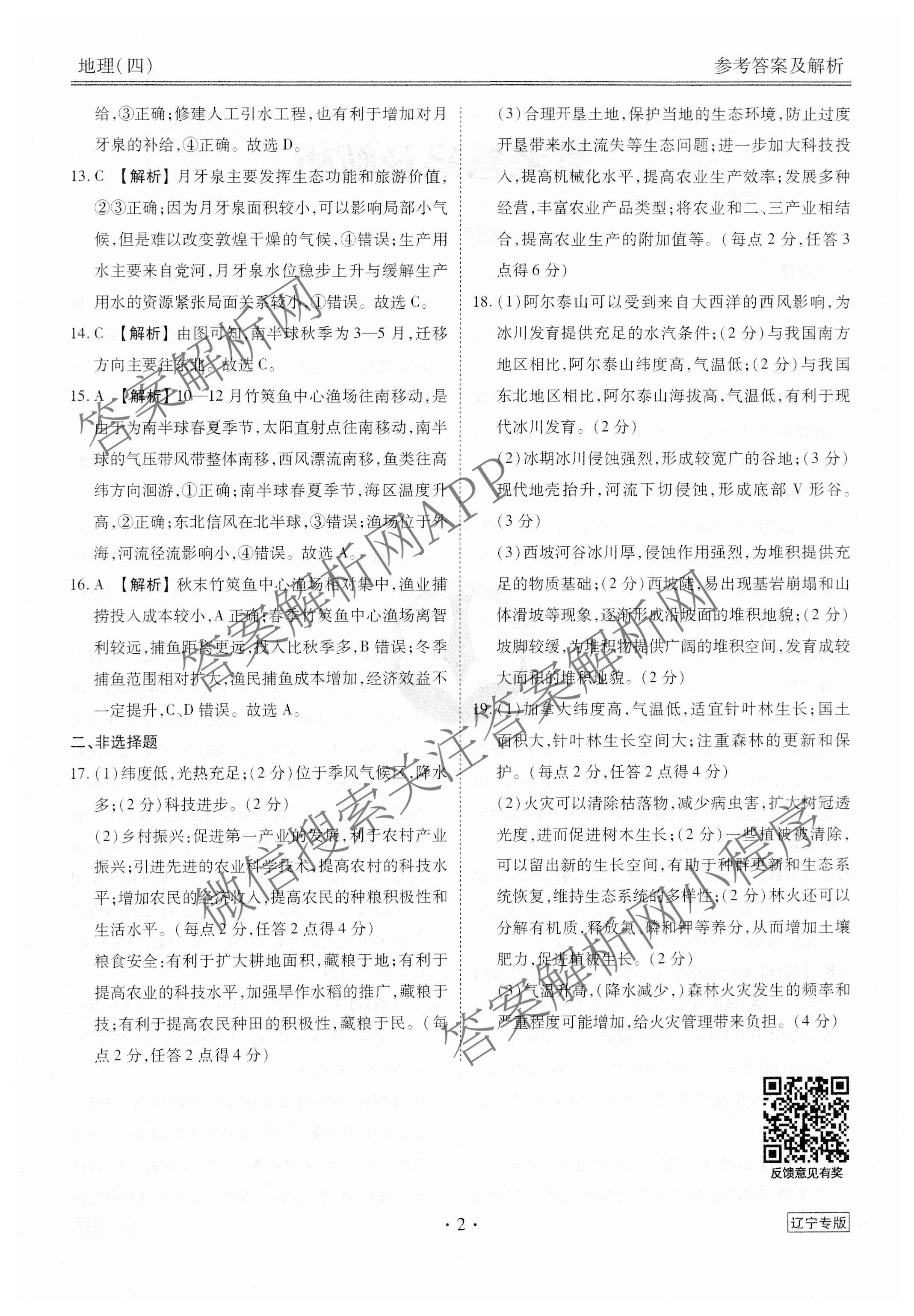 (衡水金卷先享题)调研卷 2024年普通高中学业水平选择性考试模拟试题(四)4地理(辽宁专版)答案