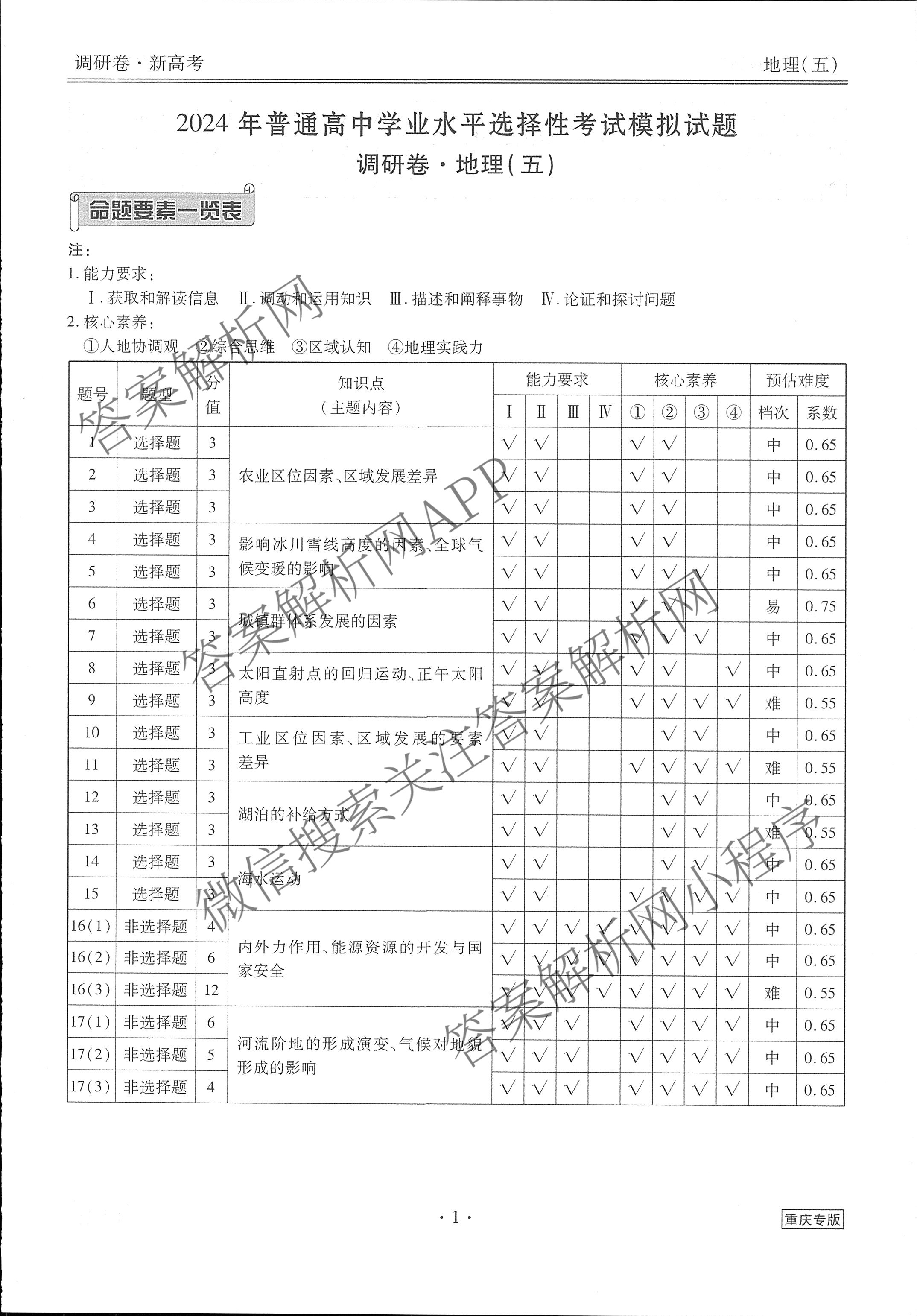[衡水金卷先享题]调研卷 2024年普通高中学业水平选择性考试模拟试题(四)4地理(重庆专版)答案