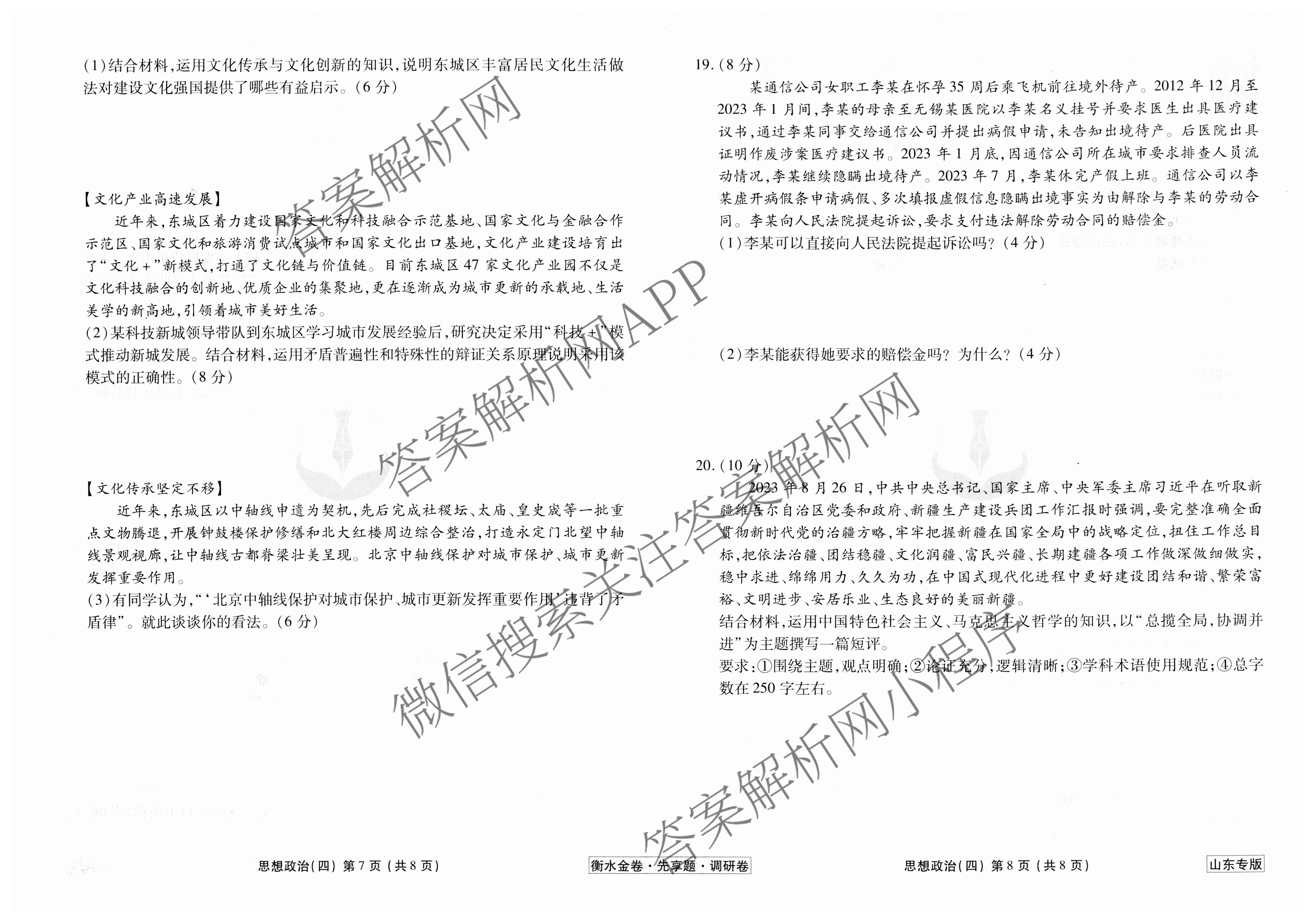 衡水金卷先享题·调研卷 2024年普通高中学业水平选择性考试模拟试题(四)4政治(山东专版)试题,目前衡水金卷先享题答案网已经汇总了衡水金卷先享题·调研卷 2024年普通高中学业水平选择性考试模拟试题(四)4政治(山东专版)试题的各科答案和试卷,获取更多衡水金卷先享题答案解析,请在关注本站。