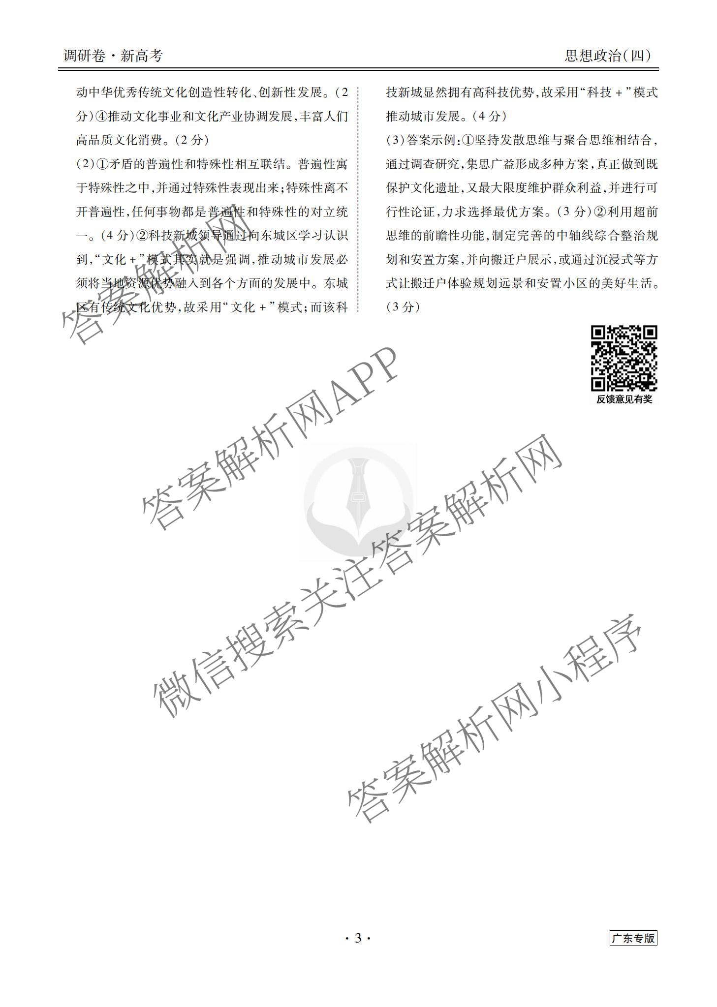 衡水金卷先享题调研卷 2024年普通高中学业水平选择性考试模拟试题(四)4政治(广东专版)答案