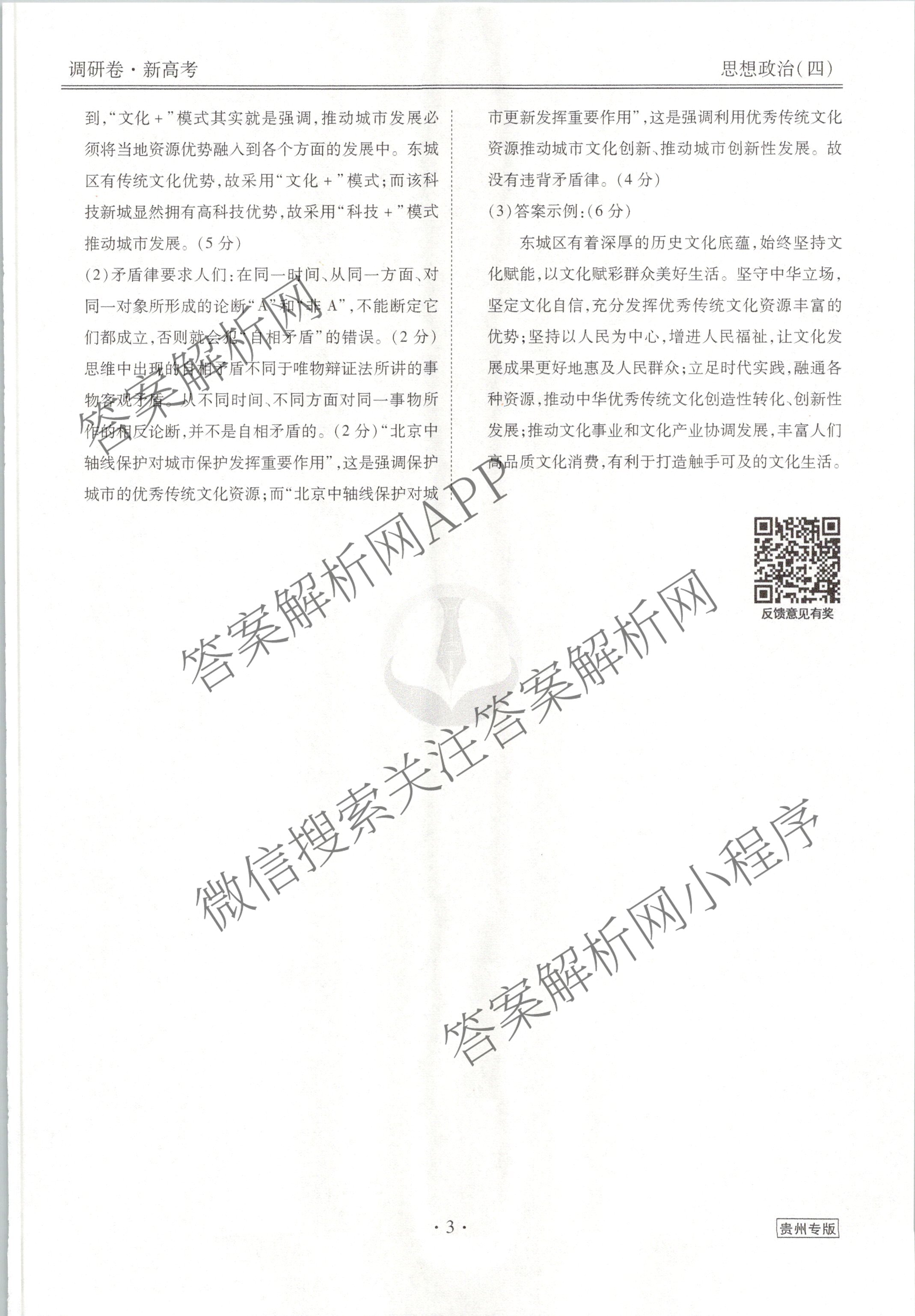 [衡水金卷先享题]调研卷 2024年普通高中学业水平选择性考试模拟试题(四)4政治(贵州专版)答案