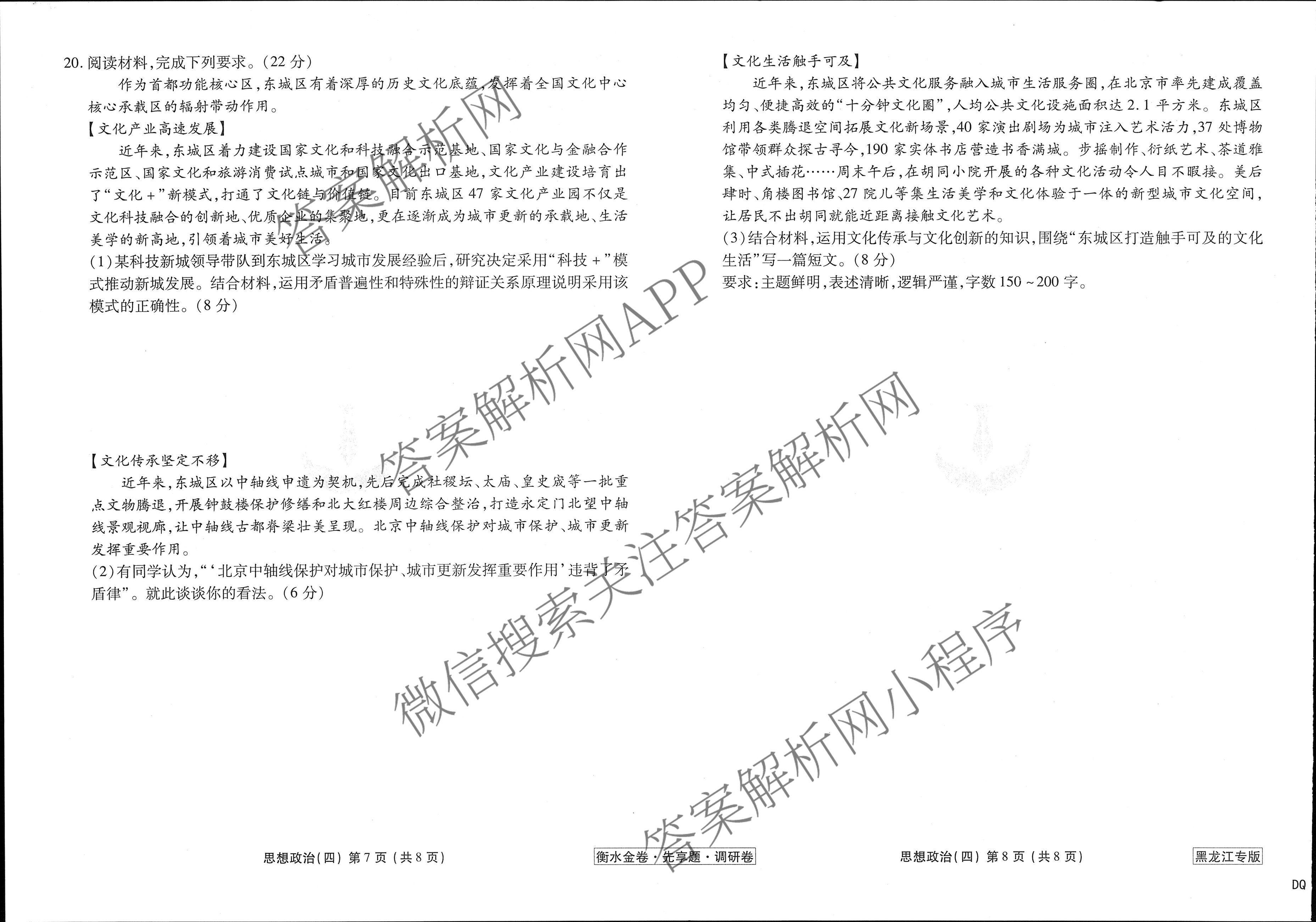 [高三]衡水金卷先享题调研卷 2024年普通高中学业水平选择性考试模拟试题(四)4政治(黑龙江专版)试题