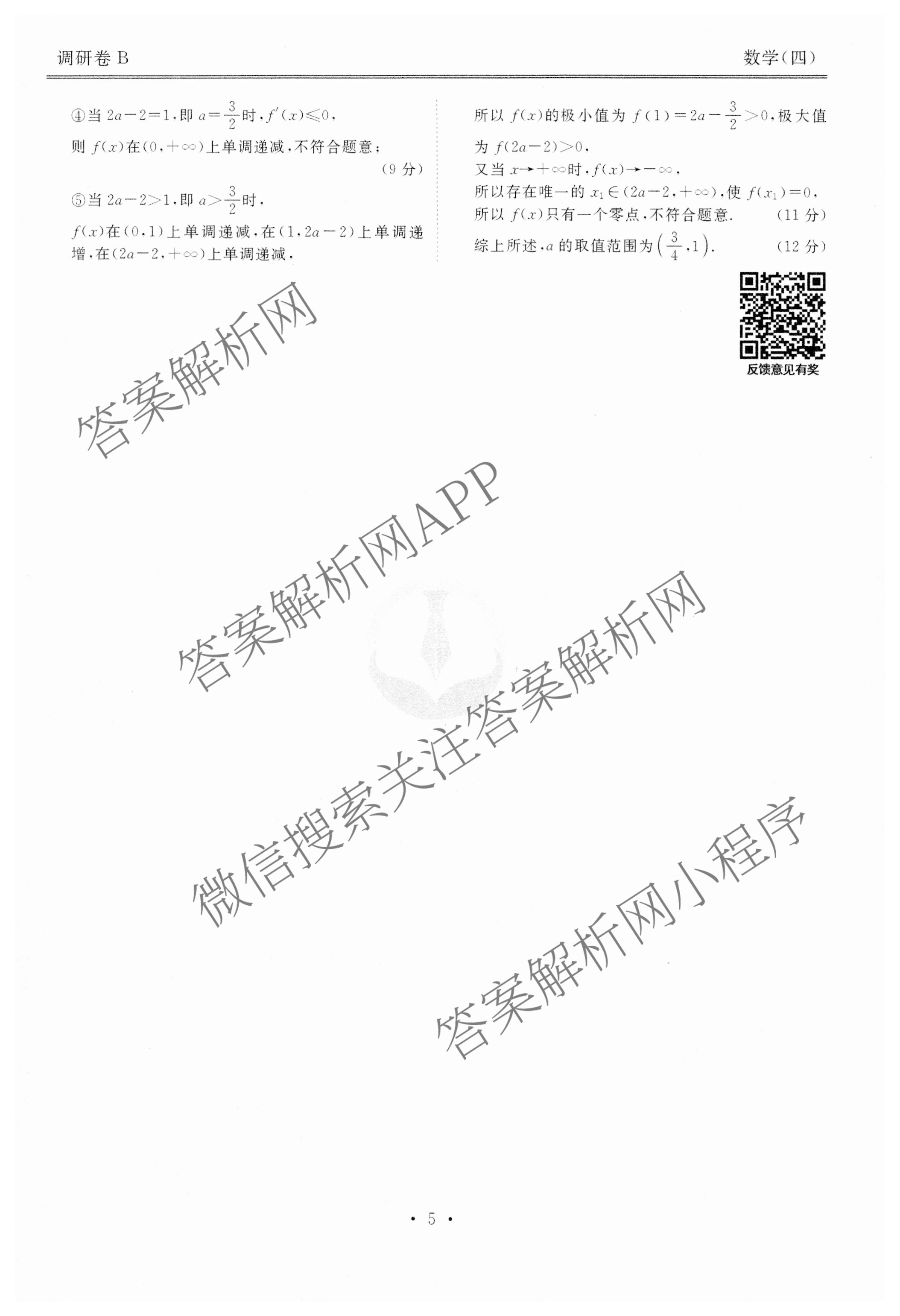 衡水金卷先享题调研卷 2024年普通高等学校招生全国统一考试模拟试题(四)4数学(B)答案