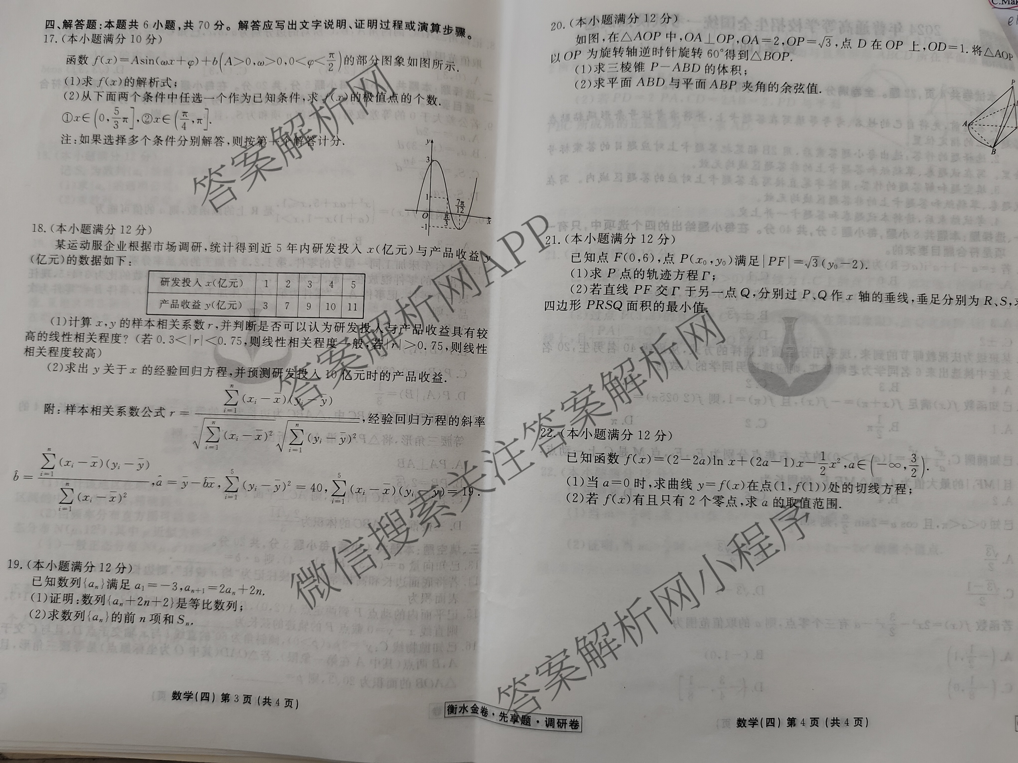 衡水金卷先享题·调研卷 2024年普通高等学校招生全国统一考试模拟试题(四)4数学(C)试题,目前衡水金卷先享题答案网已经汇总了衡水金卷先享题·调研卷 2024年普通高等学校招生全国统一考试模拟试题(四)4数学(C)试题的各科答案和试卷,获取更多衡水金卷先享题答案解析,请在关注本站。