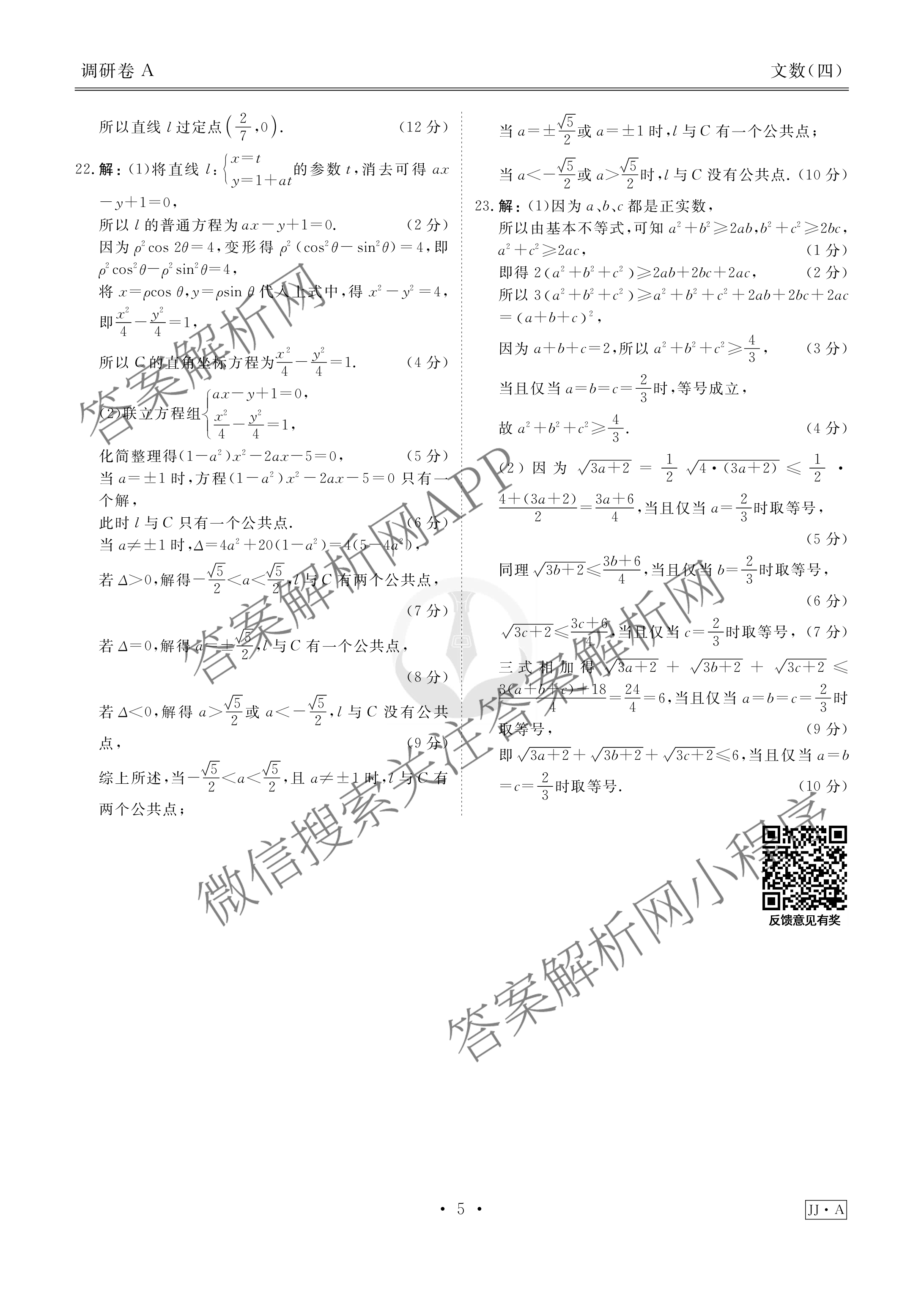 (高三)(衡水金卷先享题)调研卷 2024年普通高等学校招生全国统一考试模拟试题(四)4文数(JJA)答案