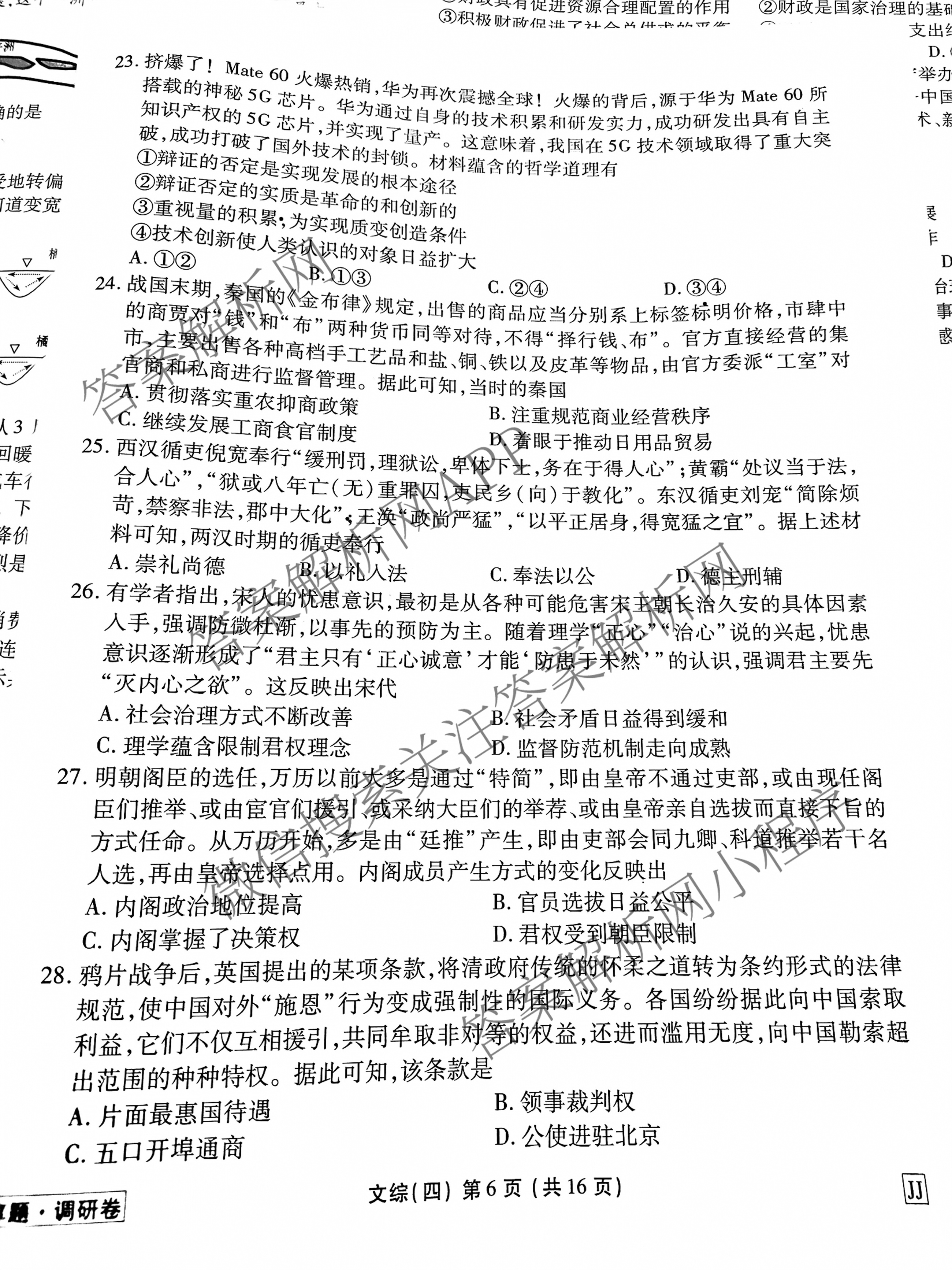 [高三]衡水金卷先享题·调研卷 2024年普通高等学校招生全国统一考试模拟(四)4文综(JJ)试题