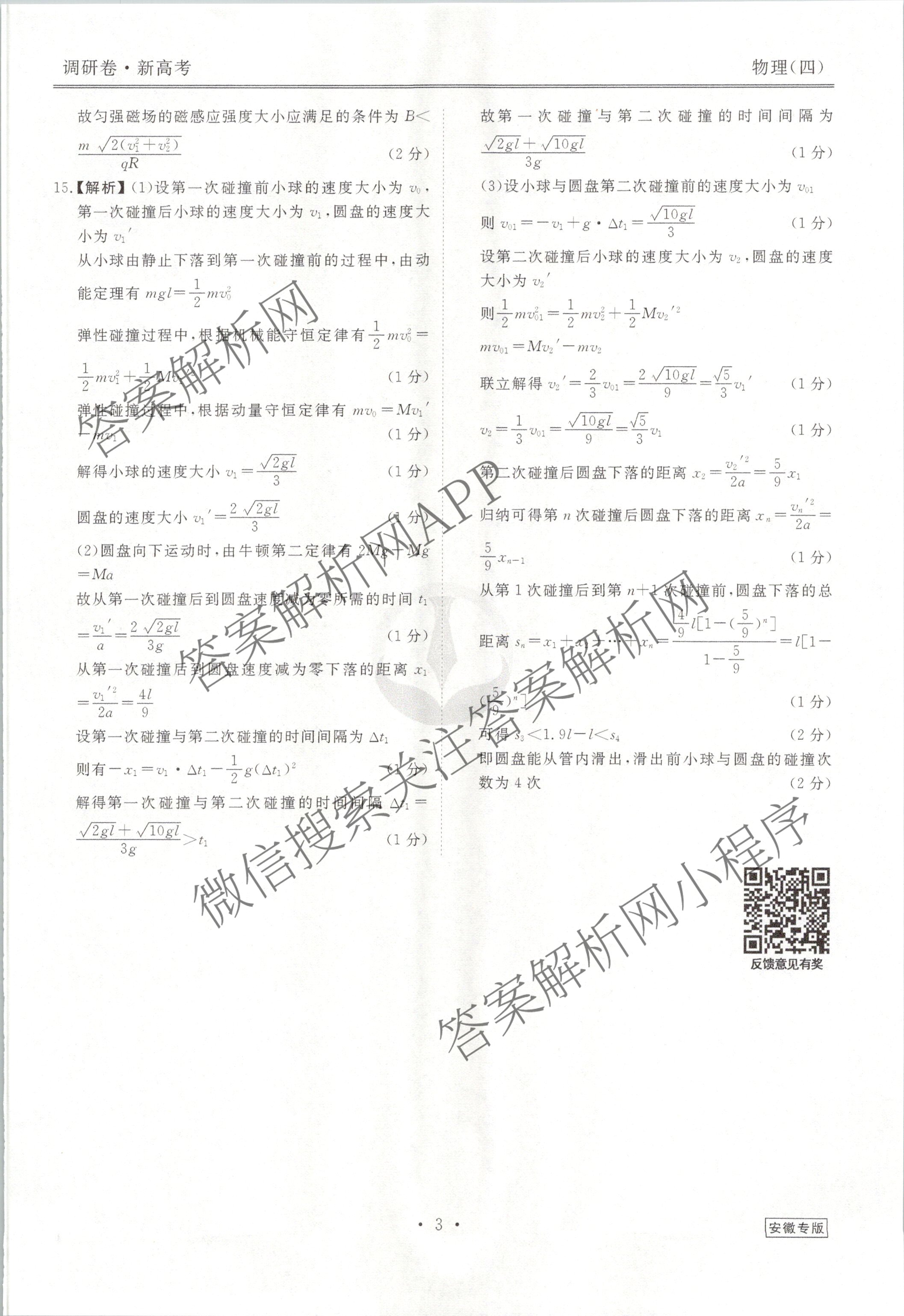 衡水金卷先享题调研卷 2024年普通高中学业水平选择性考试模拟试题(四)4物理(安徽专版)答案