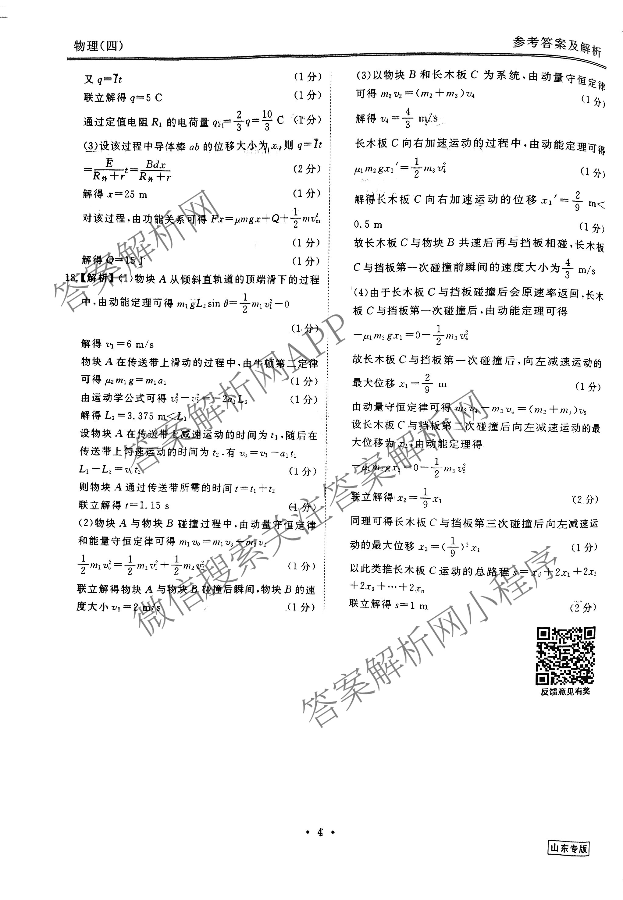 [衡水金卷先享题]调研卷 2024年普通高中学业水平选择性考试模拟试题(四)4物理(山东专版)答案