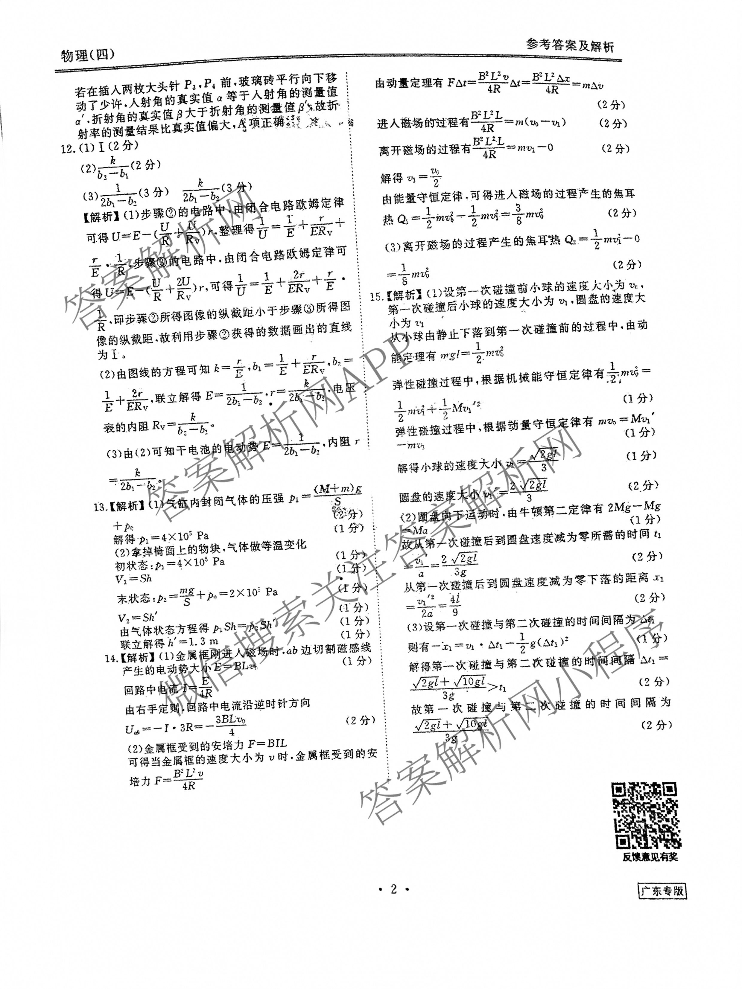 (高三)衡水金卷先享题调研卷 2024年普通高中学业水平选择性考试模拟试题(四)4物理(广东专版)答案