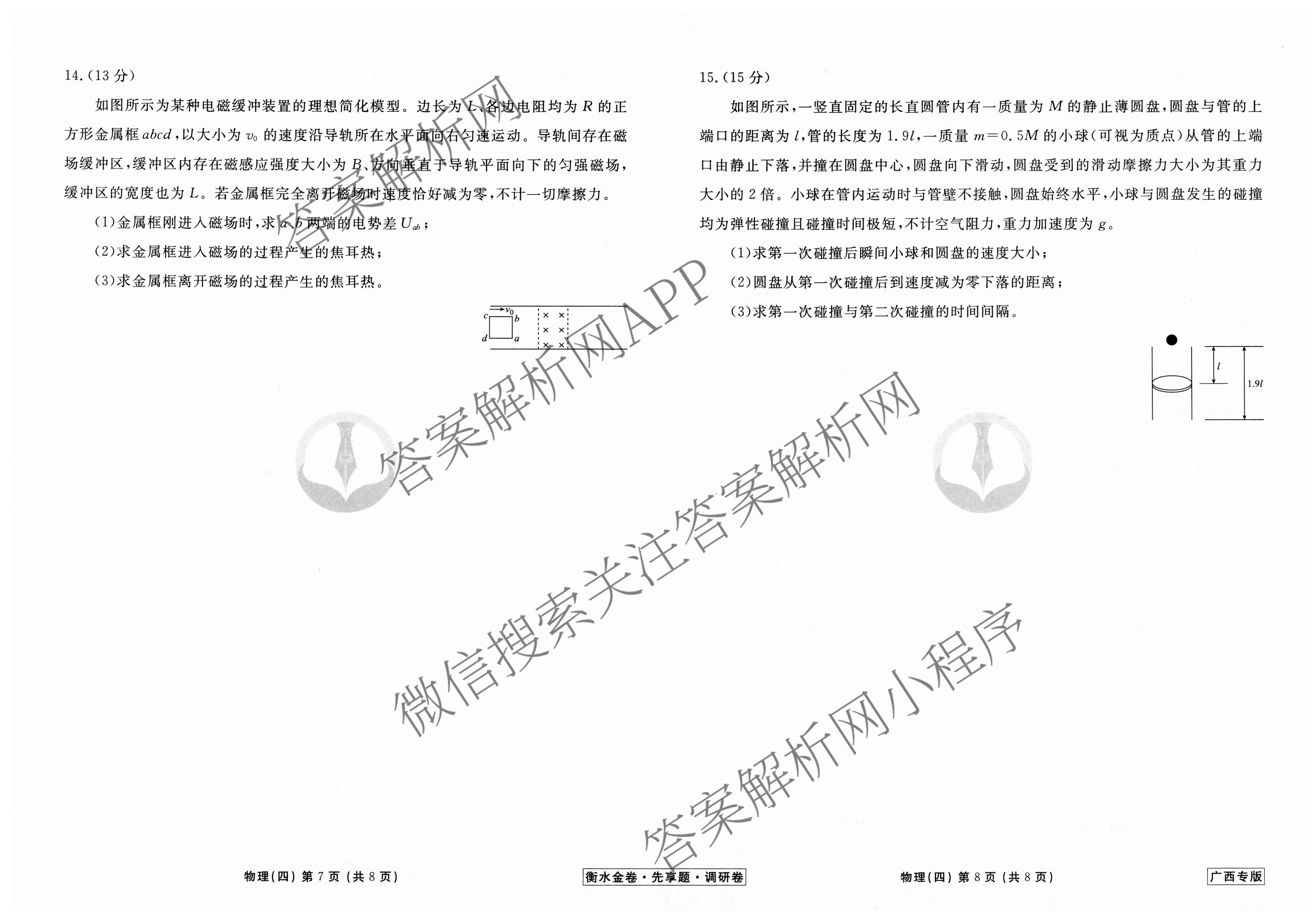 衡水金卷先享题·调研卷 2024年普通高中学业水平选择性考试模拟试题(四)4物理(广西专版)试题,目前衡水金卷先享题答案网已经汇总了衡水金卷先享题·调研卷 2024年普通高中学业水平选择性考试模拟试题(四)4物理(广西专版)试题的各科答案和试卷,获取更多衡水金卷先享题答案解析,请在关注本站。