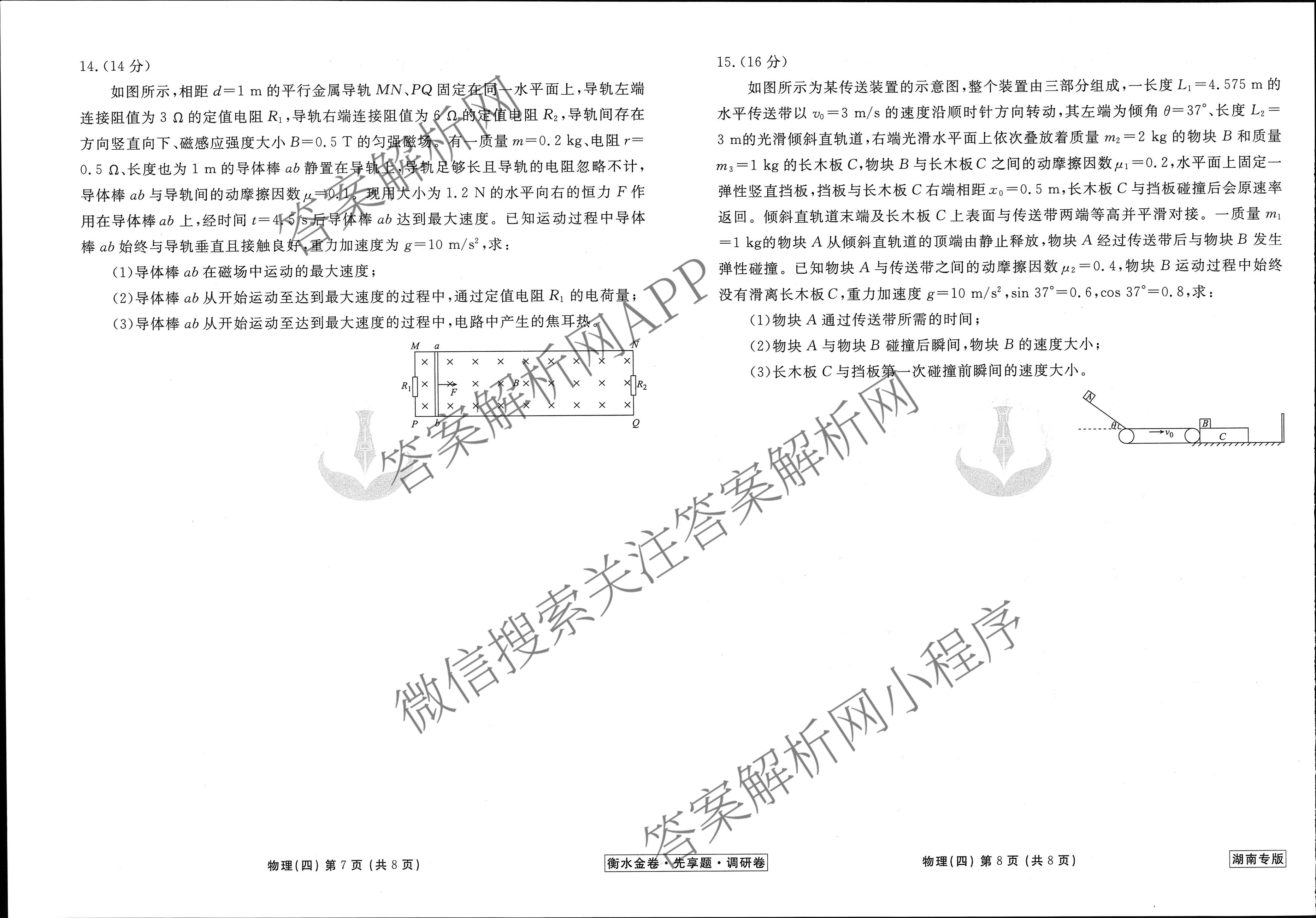 衡水金卷先享题·调研卷 2024年普通高中学业水平选择性考试模拟试题(四)4物理(湖南专版)试题,目前衡水金卷先享题答案网已经汇总了衡水金卷先享题·调研卷 2024年普通高中学业水平选择性考试模拟试题(四)4物理(湖南专版)试题的各科答案和试卷,获取更多衡水金卷先享题答案解析,请在关注本站。