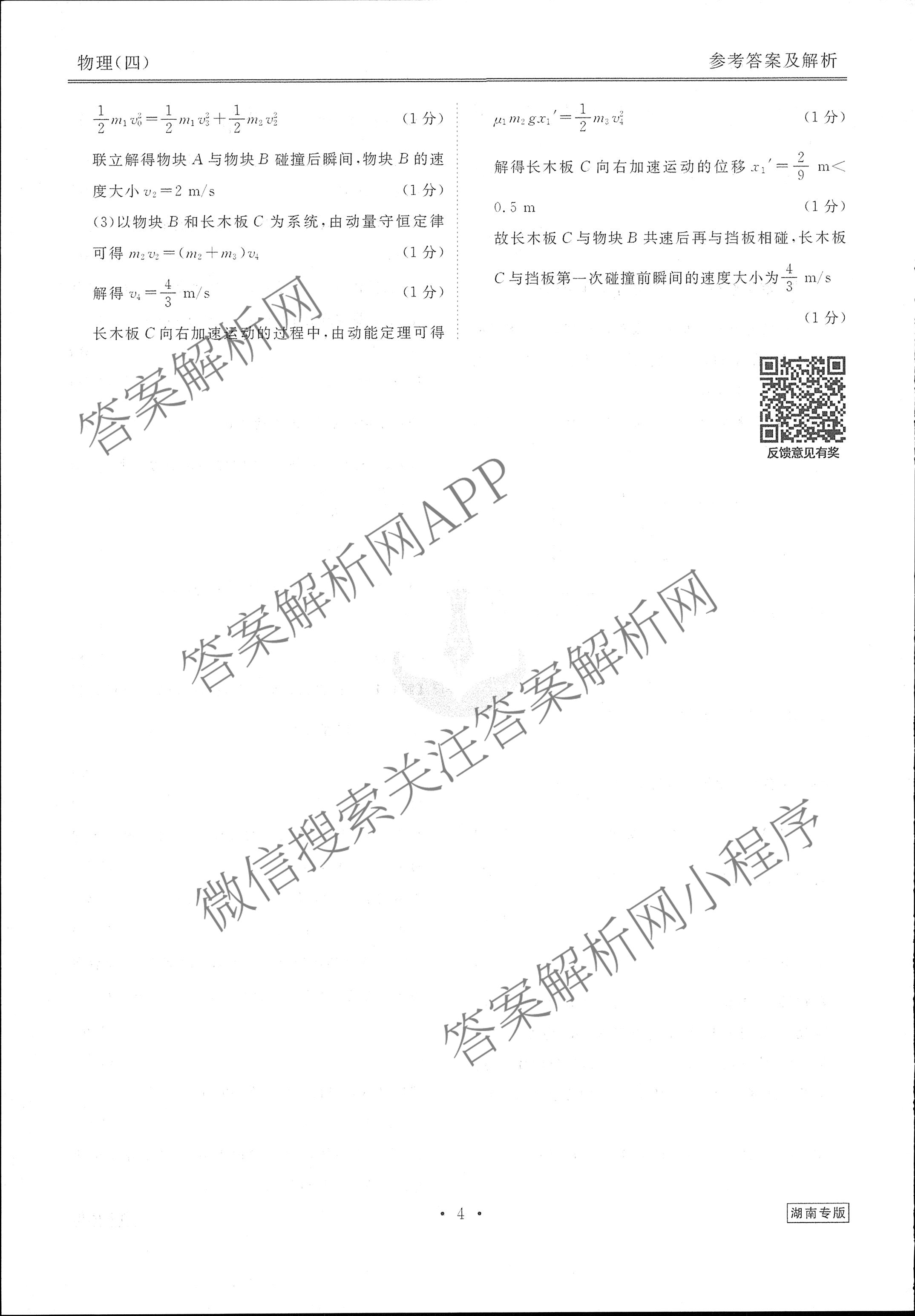 衡水金卷先享题·调研卷 2024年普通高中学业水平选择性考试模拟试题(四)4物理(湖南专版)答案,目前衡水金卷先享题答案网已经汇总了衡水金卷先享题·调研卷 2024年普通高中学业水平选择性考试模拟试题(四)4物理(湖南专版)答案的各科答案和试卷,获取更多衡水金卷先享题答案解析,请在关注本站。