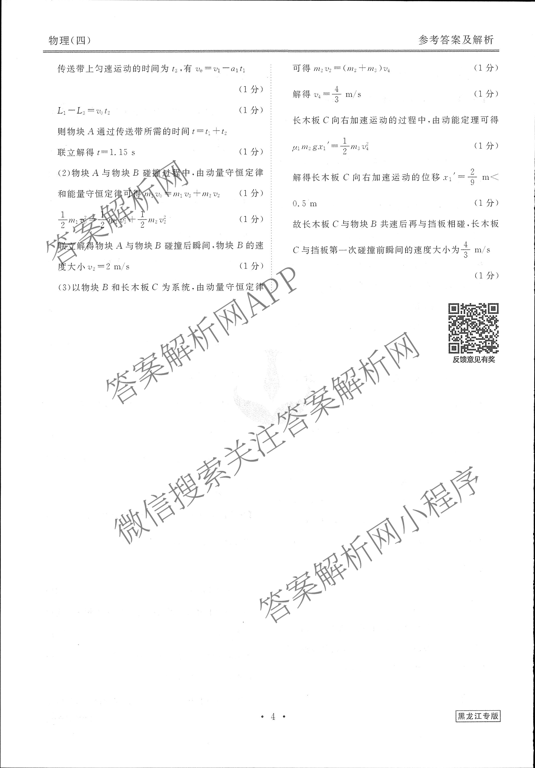 高三(衡水金卷先享题)调研卷 2024年普通高中学业水平选择性考试模拟试题(四)4物理(黑龙江专版)答案
