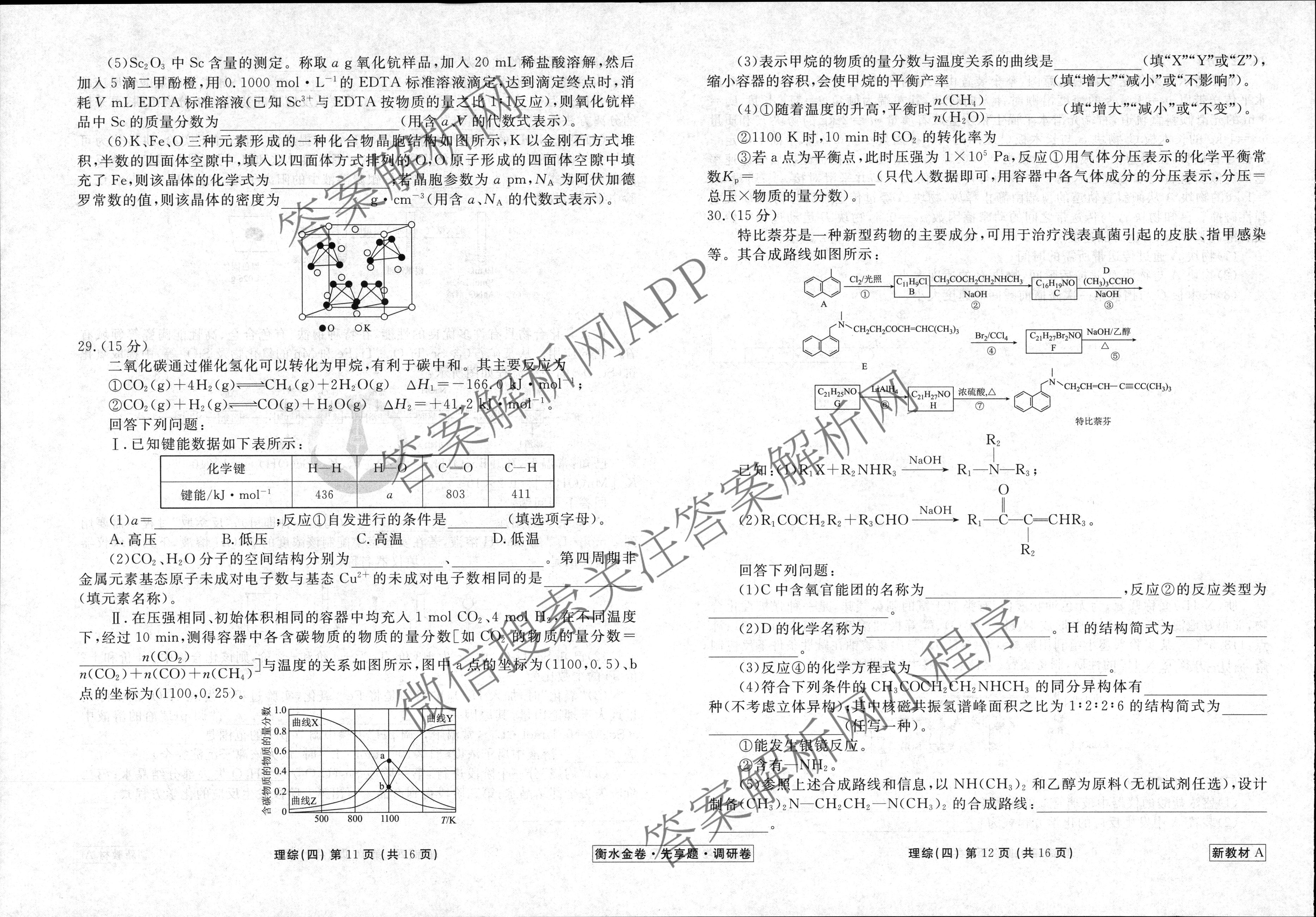 - [高三]衡水金卷先享题调研卷2024年普通高等学校招生全国统一考试模拟试题(四)4化学(老高考A)试题