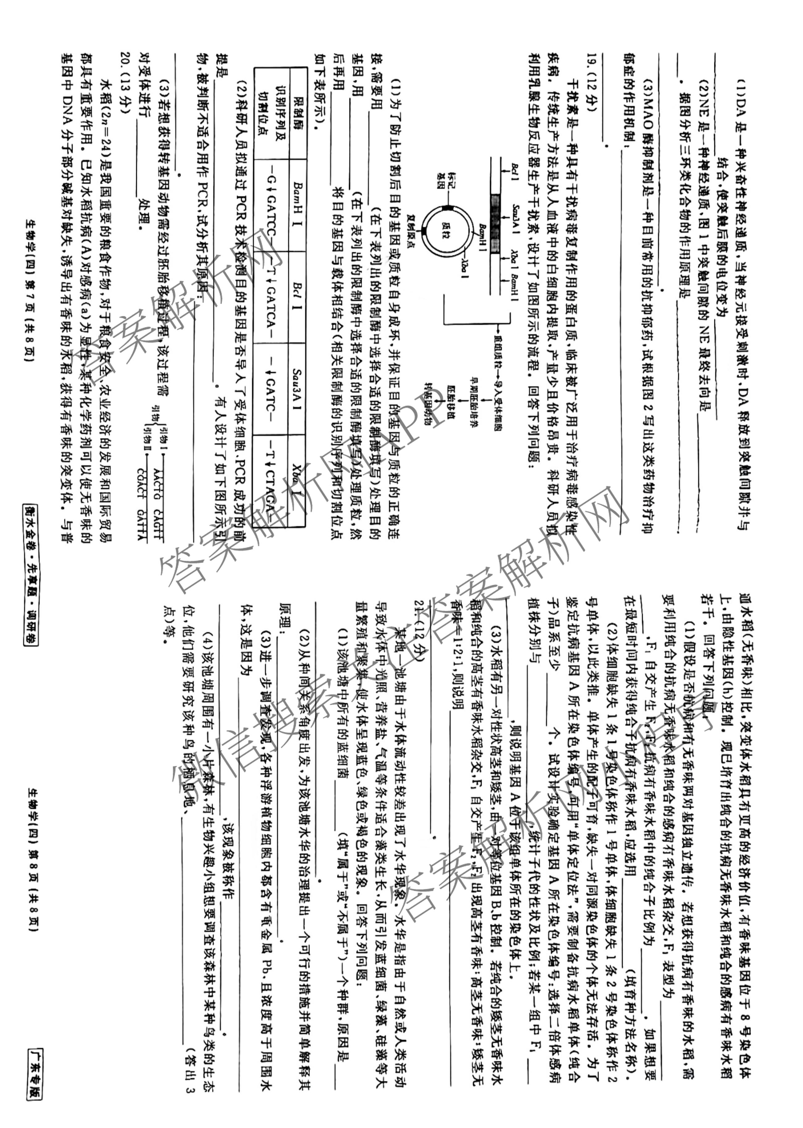 衡水金卷先享题·调研卷 2024年普通高中学业水平选择性考试模拟试题(四)4生物(广东专版)试题,目前衡水金卷先享题答案网已经汇总了衡水金卷先享题·调研卷 2024年普通高中学业水平选择性考试模拟试题(四)4生物(广东专版)试题的各科答案和试卷,获取更多衡水金卷先享题答案解析,请在关注本站。