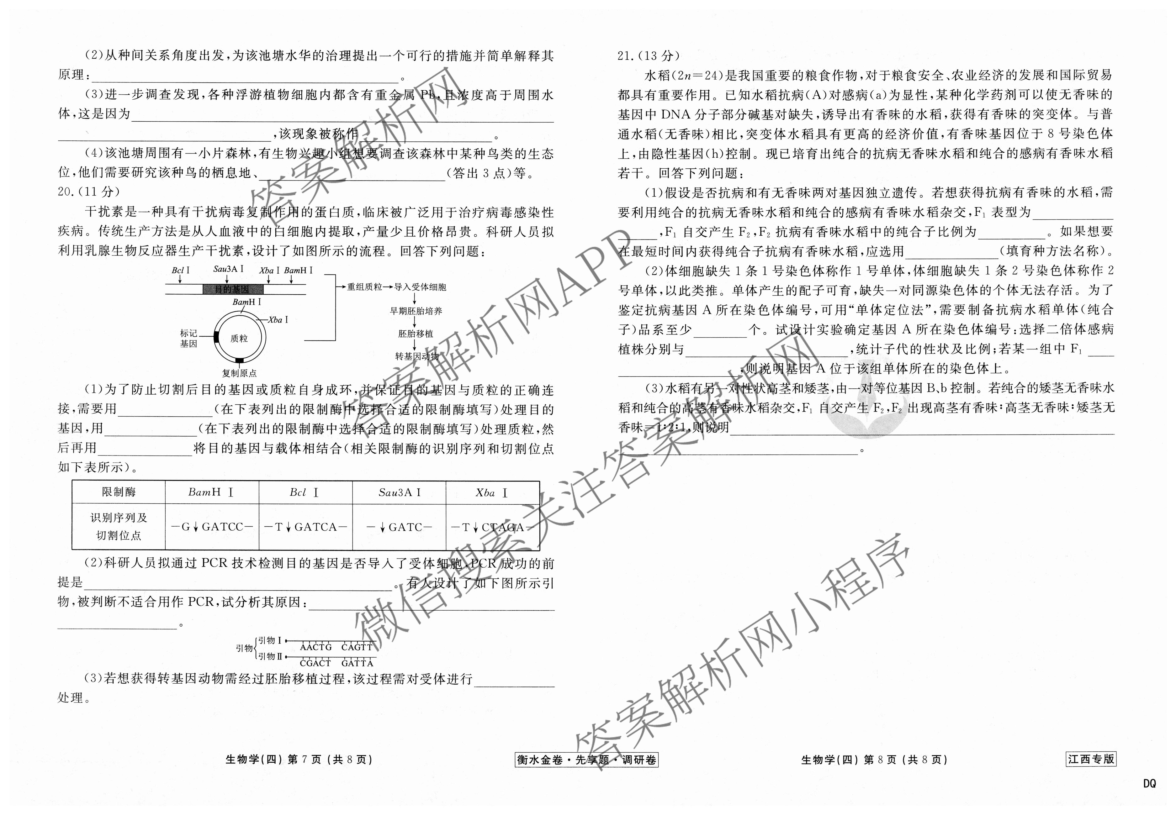 衡水金卷先享题·调研卷 2024年普通高中学业水平选择性考试模拟试题(四)4生物(江西专版)试题,目前衡水金卷先享题答案网已经汇总了衡水金卷先享题·调研卷 2024年普通高中学业水平选择性考试模拟试题(四)4生物(江西专版)试题的各科答案和试卷,获取更多衡水金卷先享题答案解析,请在关注本站。
