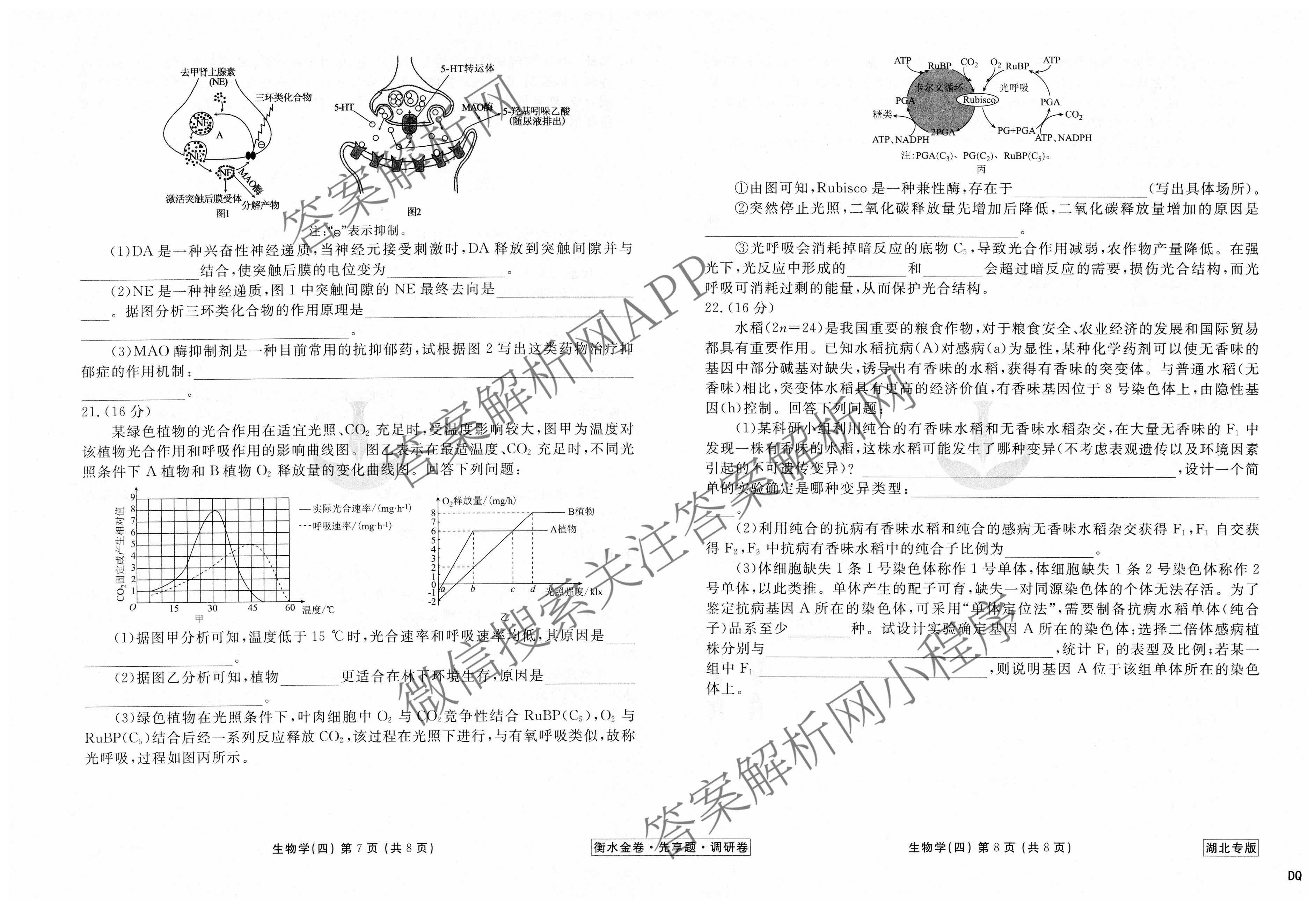 衡水金卷先享题·调研卷 2024年普通高中学业水平选择性考试模拟试题(四)4生物(湖北专版)试题,目前衡水金卷先享题答案网已经汇总了衡水金卷先享题·调研卷 2024年普通高中学业水平选择性考试模拟试题(四)4生物(湖北专版)试题的各科答案和试卷,获取更多衡水金卷先享题答案解析,请在关注本站。