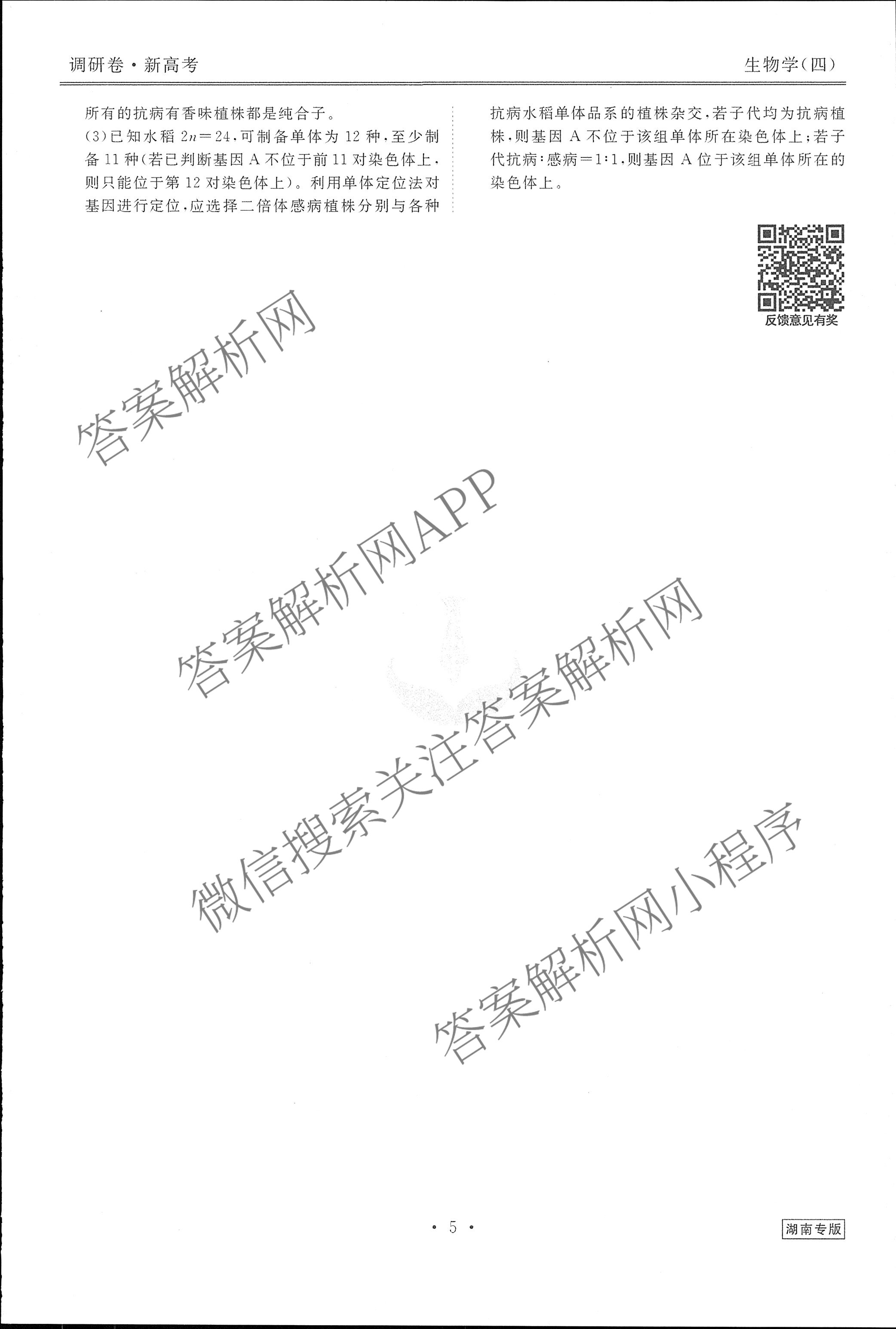 (衡水金卷先享题)·调研卷 2024年普通高中学业水平选择性考试模拟试题(四)4生物(湖南专版)答案