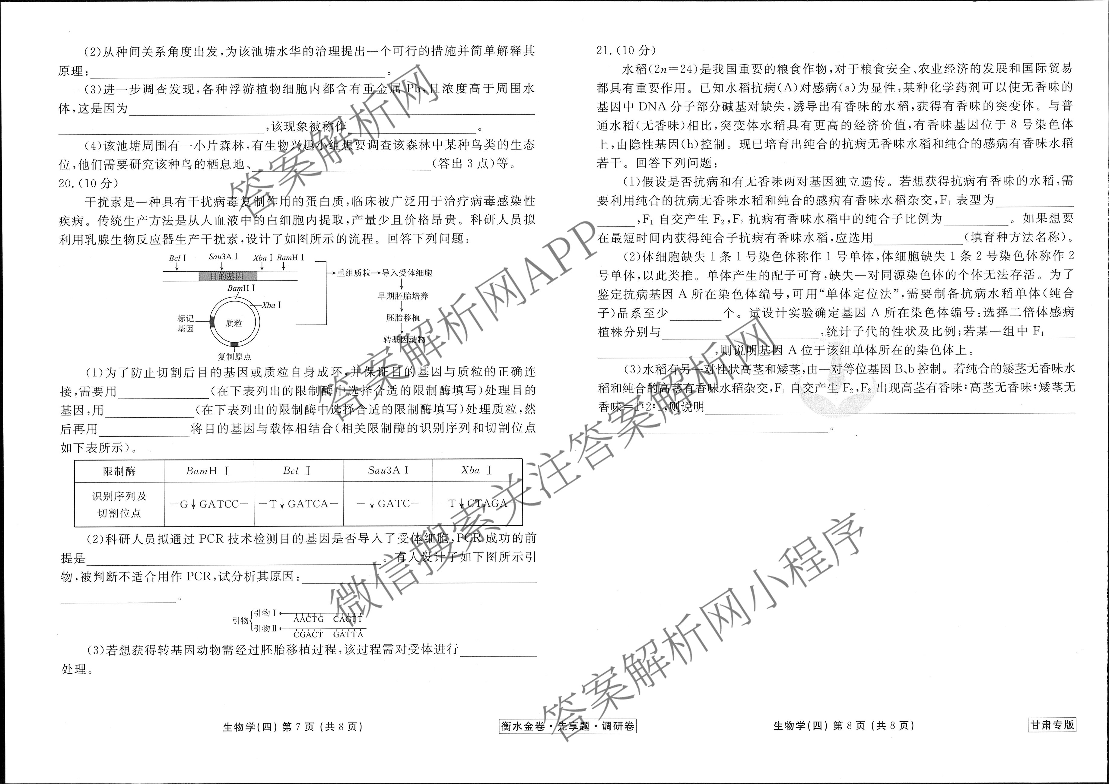 衡水金卷先享题·调研卷 2024年普通高中学业水平选择性考试模拟试题(四)4生物(甘肃专版)试题,目前衡水金卷先享题答案网已经汇总了衡水金卷先享题·调研卷 2024年普通高中学业水平选择性考试模拟试题(四)4生物(甘肃专版)试题的各科答案和试卷,获取更多衡水金卷先享题答案解析,请在关注本站。